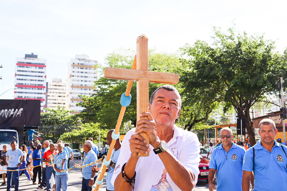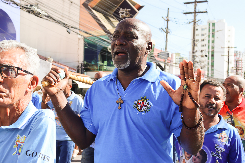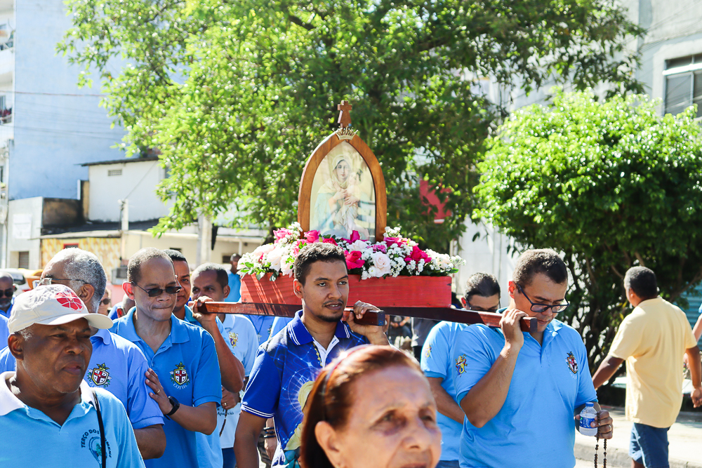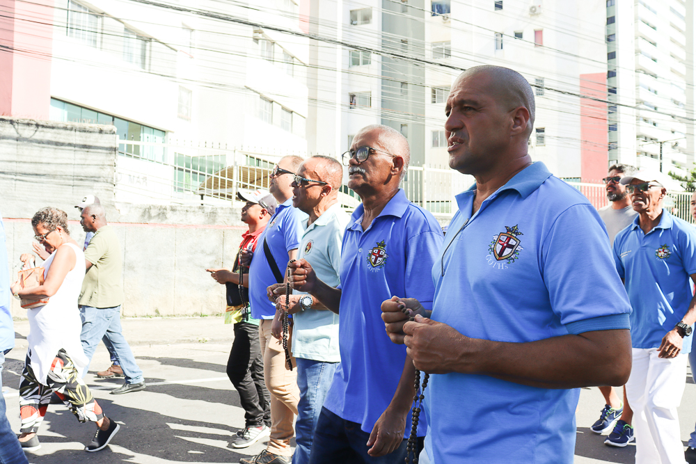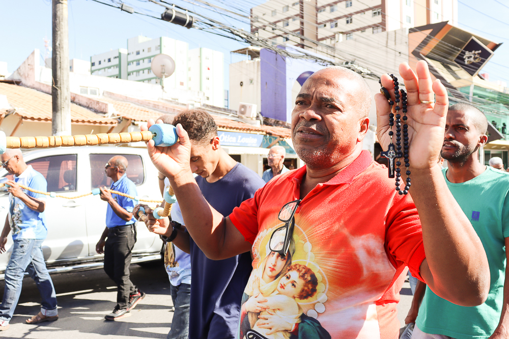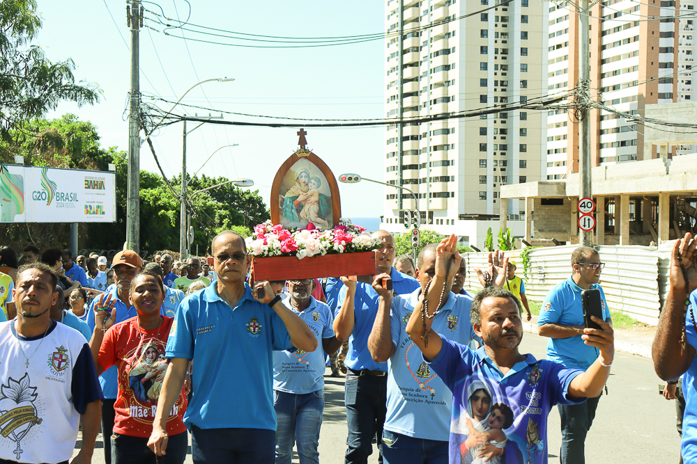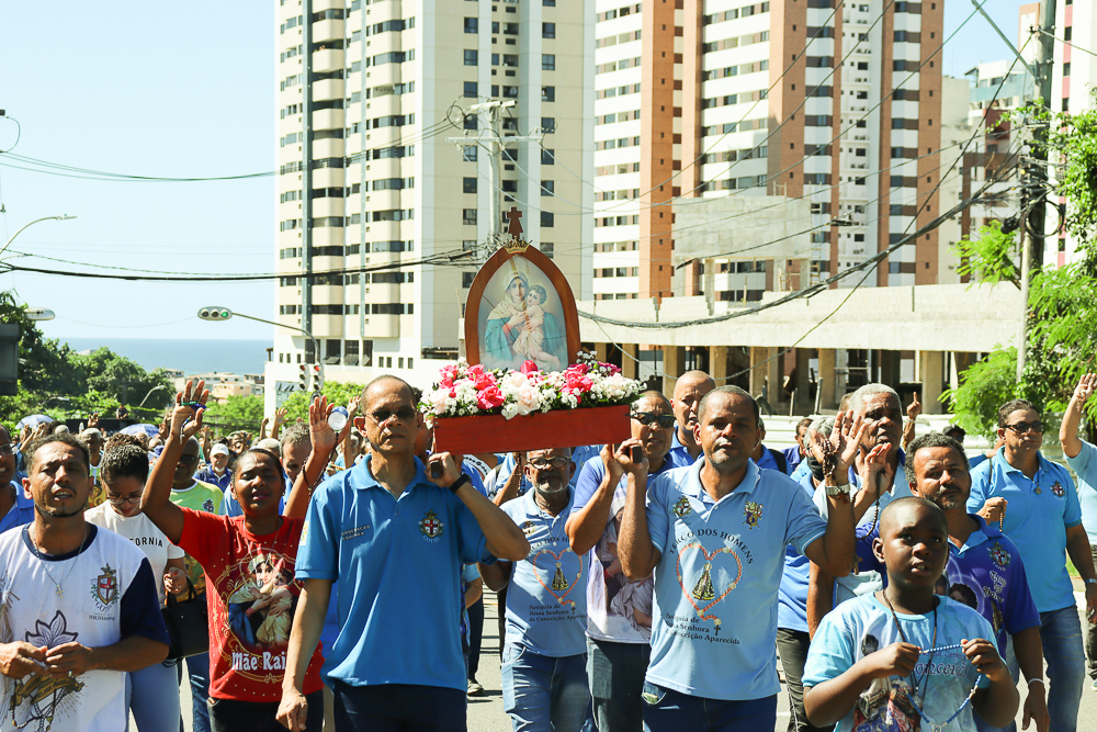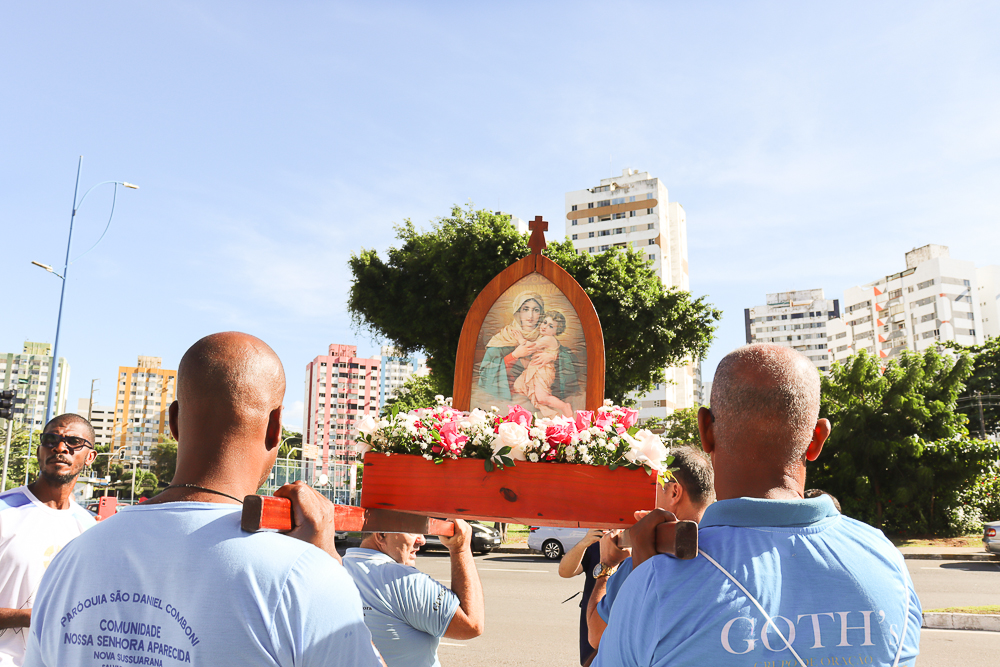 Logo após a Santa Missa, carregando a capelinha da Mãe, Rainha e Vencedora Três Vezes Admirável de Schoenstatt, os devotos seguiram em direção ao Santuário que leva este mesmo título mariano, localizado no bairro Stiep. Alegres e, ao mesmo tempo, contritos, os fiéis percorreram algumas ruas, subiram e desceram ladeiras. Nas mãos: o Terço. “Para mim, participar da Caminhada com Maria representa uma glória de Deus. É uma missão que Nossa Senhora me confiou”, disse o membro do GOTH’s da Basílica Santuário Nossa Senhora da Conceição da Praia, Manuel Almeida.