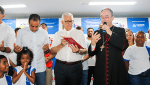 A bênção concedida pelo Arcebispo de São Salvador da Bahia, Primaz do Brasil, Cardeal Dom Sergio da Rocha, marcou o momento central da inauguração da Escola Municipal Papa Francisco, realizada na manhã desta sexta-feira (27), no bairro de Nova Esperança, em Salvador. Em um gesto de fé e esperança, o Cardeal pediu a proteção de Deus sobre o novo espaço educativo, abençoando estudantes, educadores, funcionários e as famílias da comunidade, para que a escola seja um lugar de formação integral, convivência fraterna e promoção da paz.