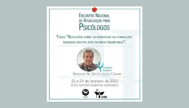 O Encontro Nacional de Atualização para Psicólogos(as) terá como temática principal “Reflexões sobre as parafilias na formação humano-afetiva dos futuros presbíteros” e será assessorado pelo teólogo e psicólogo, padre Sérgio Lucas Câmara, da arquidiocese de São Paulo. Ele é professor da Pontifícia Católica Universidade de São Paulo (PUC-SP) / Pontifícia Faculdade de Teologia Nossa Senhora da Assunção e leciona disciplinas da área de Teologia Prática, Psicologia Pastoral e Teologia em Diálogo com a Saúde.