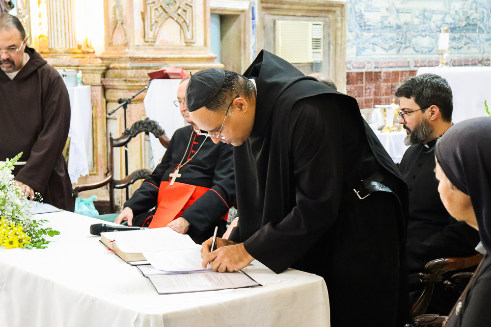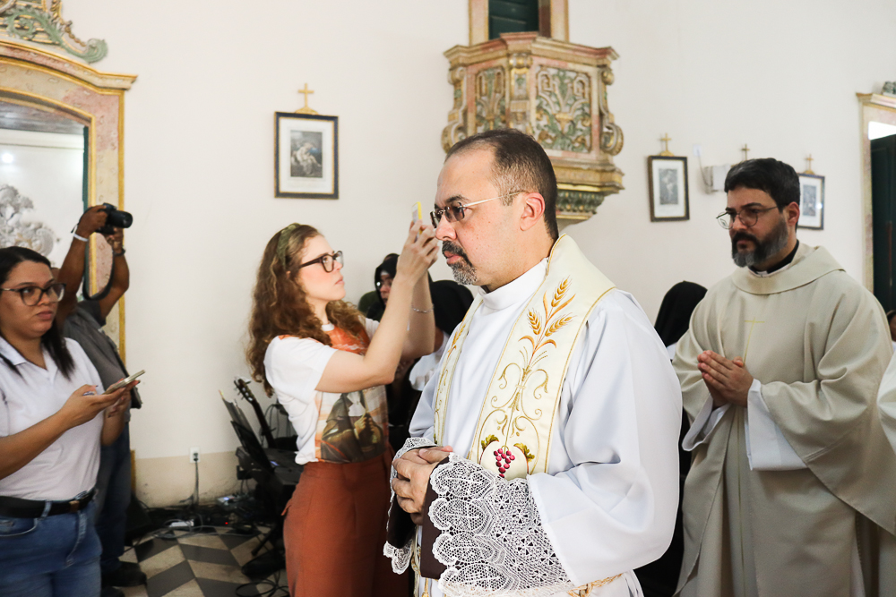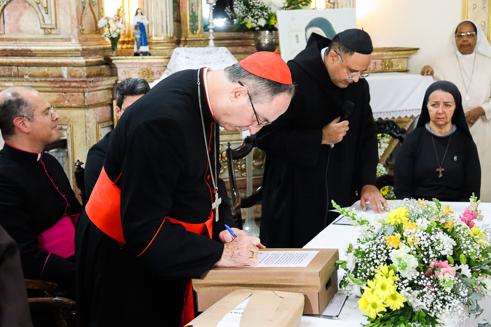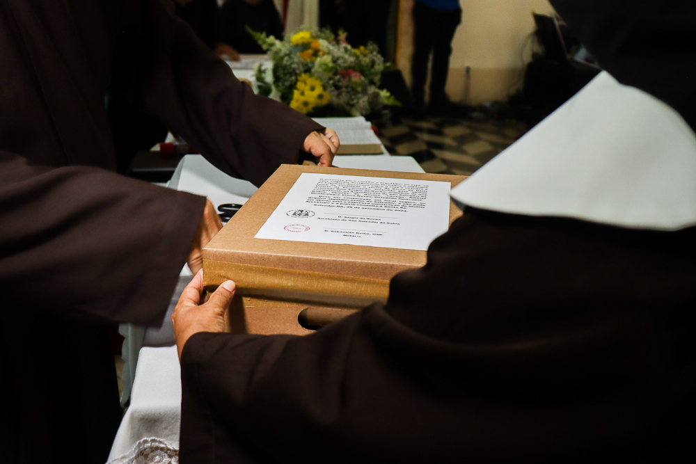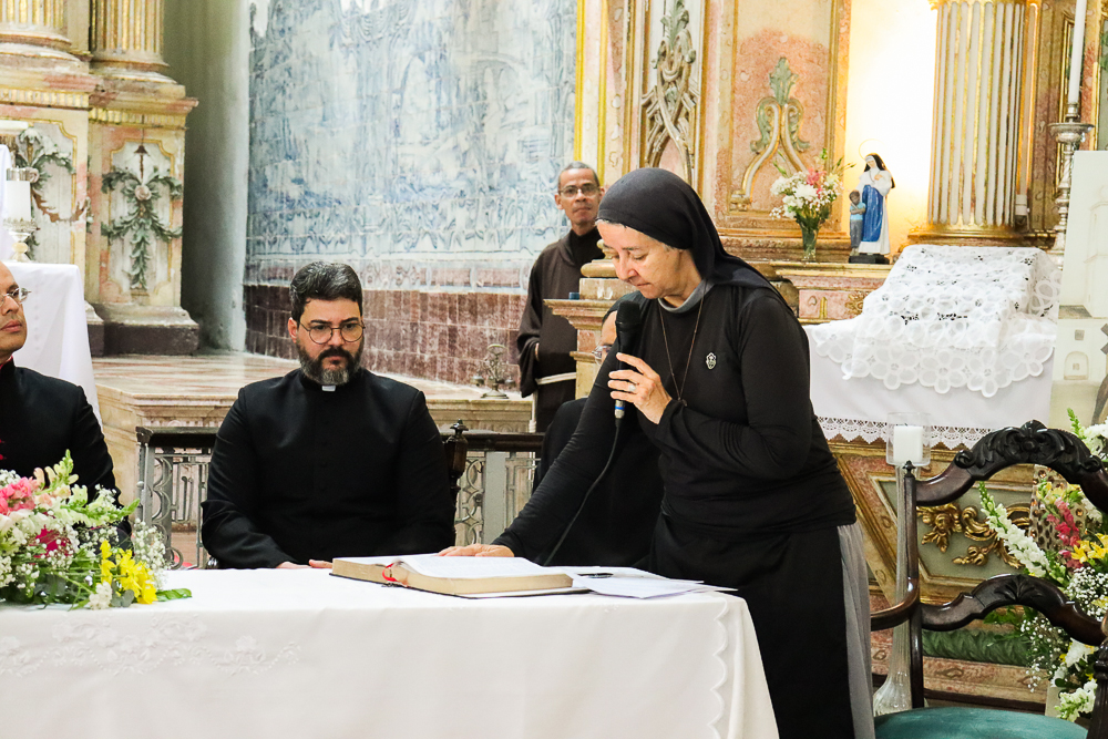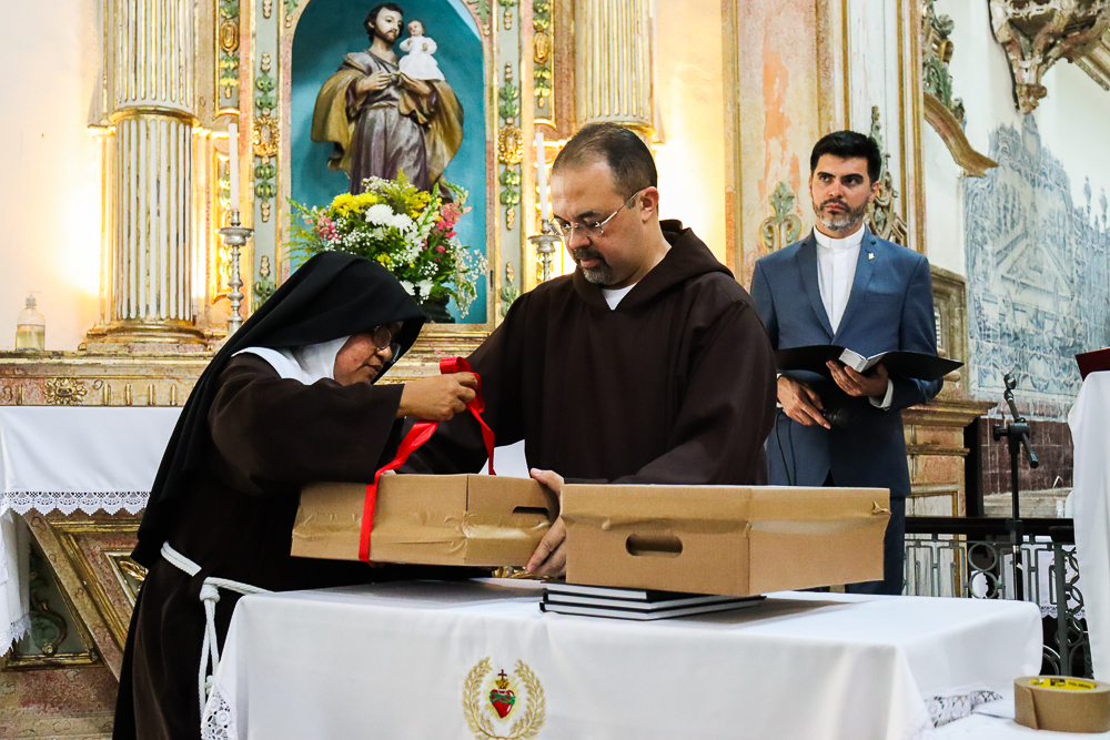 Para marcar ainda mais esse momento, após a Sessão Solene, Dom Sergio presidiu a Missa. “Eu estou muito emocionada, pois é uma graça muito grande. Eu vejo que Nosso Senhor tem Seus planos, Seus caminhos e nos colocar aqui nesse lugar Sagrado é um compromisso e uma responsabilidade muito grandes”, disse a Irmã Elaine das Chagas Coelho, ministra local da Congregação Franciscanas do Sagrado Coração de Jesus [religiosas que atualmente residem no Convento Santa Clara do Desterro].