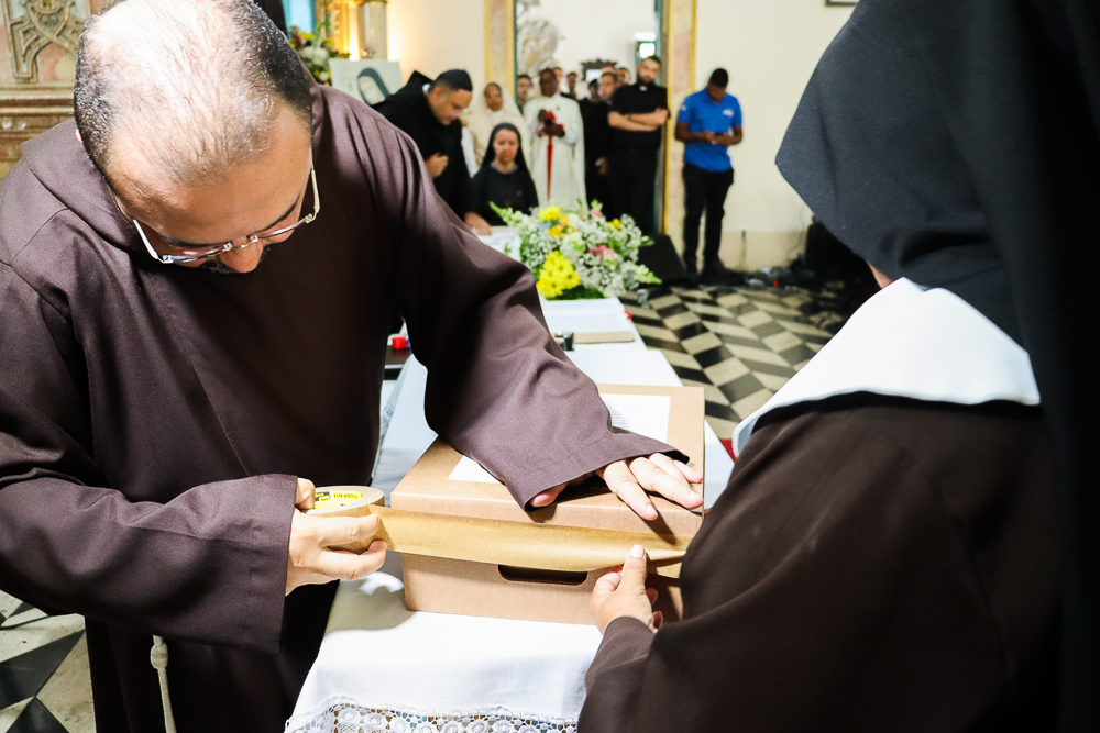 Antes do fim da Sessão, o postulador, com a ajuda de uma Irmã Clarissa [mesma congregação da Serva de Deus Vitória da Encarnação], lacrou as três caixas que seguirão para o Vaticano. “Agora, na verdade, nós seguiremos com a oração pedindo a beatificação e, justamente, para pedir a beatificação se pede também graças, milagres para que ela interceda por nós junto a Jesus. Temos a esperança de dar prosseguimento e de poder ver, mais uma vez, uma santa da nossa Arquidiocese, da nossa Bahia, nos altares. Madre Vitória é um exemplo de oração, de contemplação, de adoração e, ao mesmo tempo, de caridade. Primeiro, caridade entre as próprias Irmãs, isto é, vivência do amor fraterno na comunidade. E depois, acima de tudo, a caridade para com os mais pobres e sofredores, especialmente representados pelas pessoas escravizadas. Madre Vitória soube amar e servir os que mais sofrem, renunciando a muita coisa que ela poderia ter, pessoalmente, em favor dos pobres e sofredores”, disse Dom Sergio.