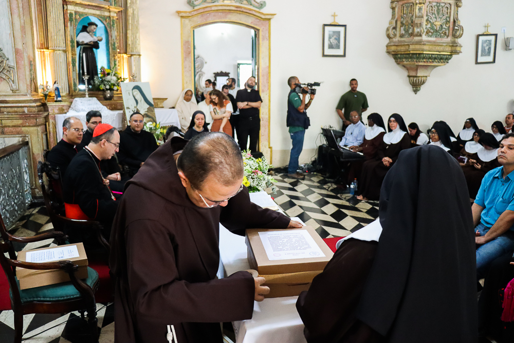 Além de Dom Sergio, a mesa foi formada pelo postulador da Causa da Serva de Deus, frei Jociel Gomes; pelo cônego Alberto Montealegre, nomeado Delegado Episcopal; pelo padre Laudimar Oliveira da Silva, nomeado promotor de Justiça; pelo notário e pela notária adjunta, Dom Sebastião Rolim e Irmã Violeta, respectivamente. “Apesar das dificuldades ao longo desse caminho para obter os documentos, devido à escassez de fontes em tantos dos nossos arquivos, a Comissão Histórica trabalhou bravamente em arquivos tanto aqui da Bahia quanto fora, inclusive também em Portugal, porque nós encontramos lá registros do pai da Madre Vitória querendo encontrar um convento para colocar as suas filhas, a Vitória e a sua irmã, para estudar. Então, toda essa troca de informações, tanto do Brasil quanto de Portugal, foi importante, mas uma grande parte nós pudemos encontrar aqui no arquivo que está com as irmãs no Convento do Desterro”, disse o frei Jociel.