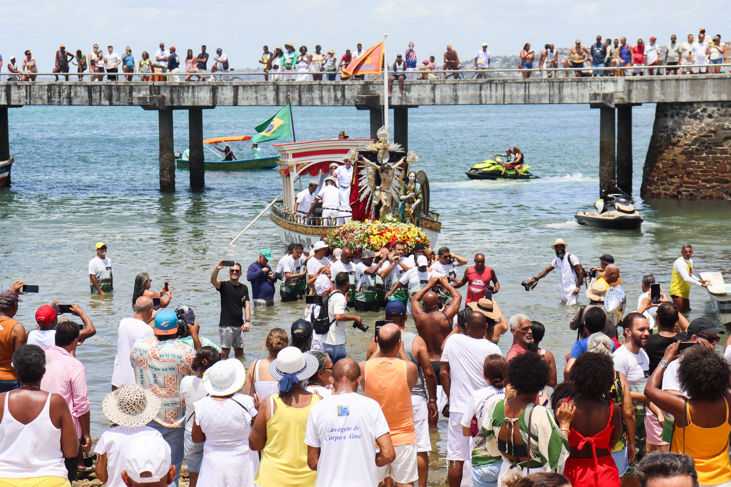 Após a Celebração Eucarística, aconteceu mais uma procissão terrestre com as imagens do Senhor Bom Jesus dos Navegantes e de Nossa Senhora da Conceição da Praia até a Capitania dos Portos, onde ocorreu o novo embarque do Bom Jesus na Galeota, onde também esteve presente o bispo auxiliar da Arquidiocese de São Salvador da Bahia, Dom Dorival Barreto.