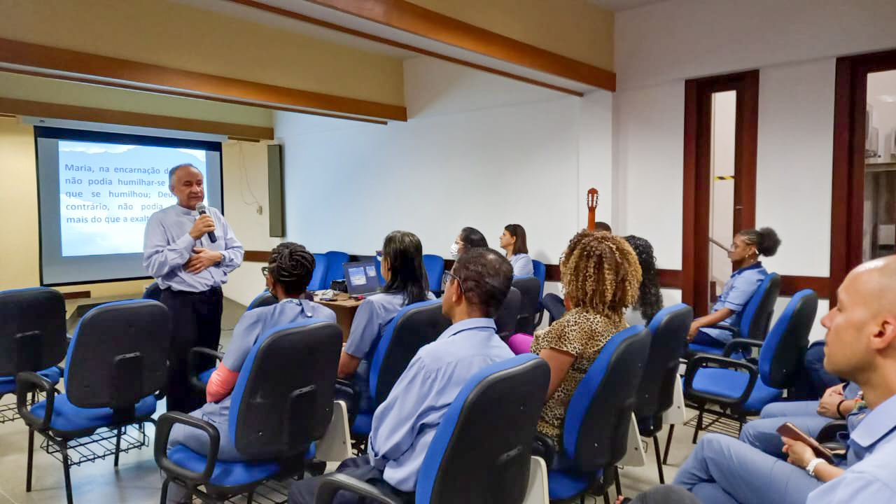 Na Cúria Metropolitana de Salvador, a manhã desta segunda-feira teve início com uma formação sobre Nossa Senhora. O encontro, que reuniu funcionários e colaboradores, foi realizado no Centro Arquidiocesano de Pastoral e conduzido pelo vigário-geral e moderador da Cúria, cônego Juraci Gomes.