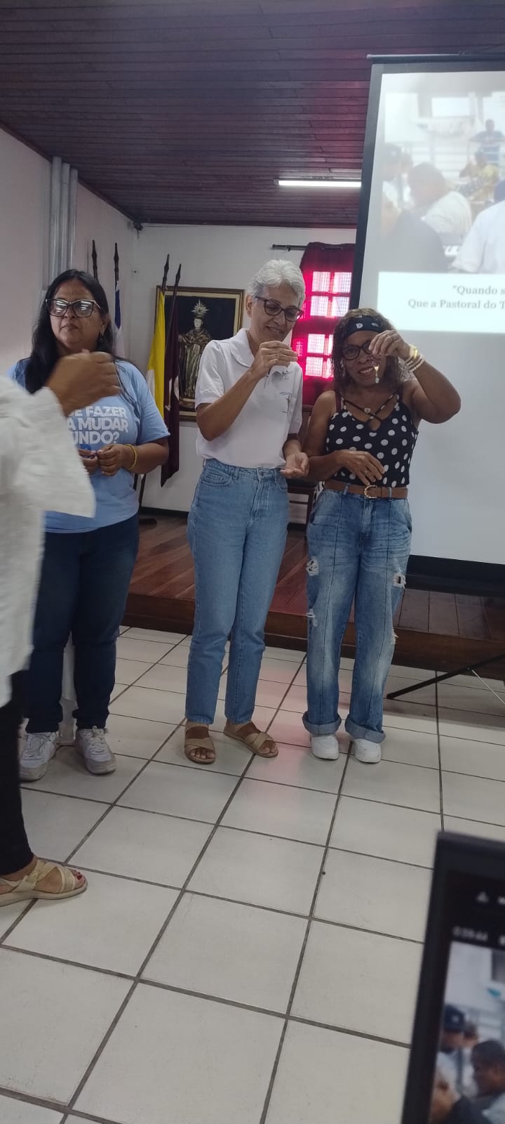 Ao final do encontro, foram sorteados terços com a logomarca da Pastur. Alguns participantes também compartilharam brevemente suas trajetórias, áreas de atuação e expectativas em relação às atividades da pastoral. O evento foi encerrado com a exibição do vídeo “Alagados, Terra dos Três Santos”, produzido pela Secretaria Municipal de Cultura e Turismo de Salvador, que destaca a riqueza cultural e espiritual do território.