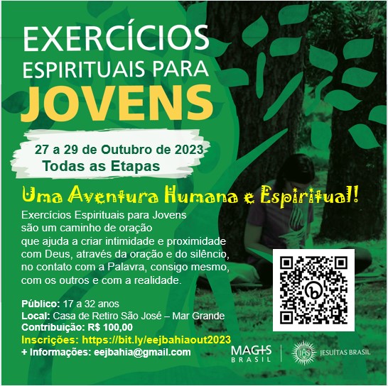 Com o objetivo de proporcionar um caminho de intimidade e proximidade com Deus, através da oração e do silêncio, o grupo de Exercícios Espirituais para Jovens (EEJ/Ba) promoverá um retiro espiritual, inspirado no método de oração de Santo Inácio de Loyola. O encontro acontecerá entre os dias 27 e 29 de outubro, na Casa de Retiro São José, em Mar Grande, e é voltado para jovens com idades entre 17 e 32 anos. Para participar, o interessado deve realizar a inscrição através do formulário [] e realizar o pagamento da taxa no valor de R$ 100. Mais informações pelo e-mail: eejbahia@gmail.com