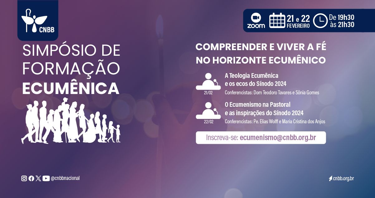 A Comissão Episcopal para o Ecumenismo e o Diálogo Inter-religioso realizará, de modo online, de 21 a 22 de fevereiro de 2024, o Simpósio de Formação Ecumênica com o tema: “Compreender e viver a fé no horizonte ecumênico”. Ainda dá tempo de se inscrever.