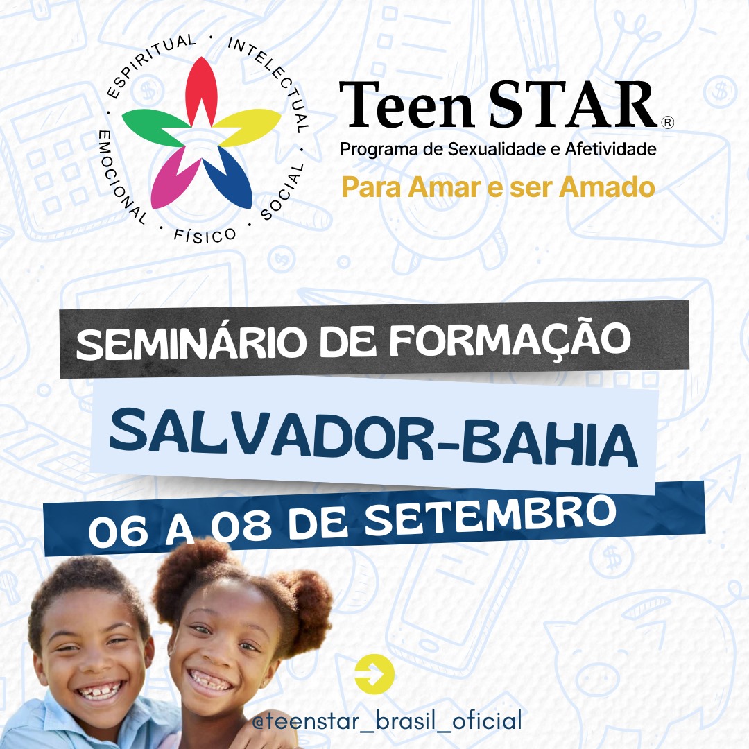 O Pontifício Instituto São João Paulo II para o Matrimônio e Família, em parceria com o programa internacional Teen STAR, oferecerá de 6 a 8 de setembro, no Centro Arquidiocesano de Pastoral (Avenida Leovigildo Filgueiras, 270, Garcia Salvador), um Seminário de Formação do Teen STAR sobre Sexualidade e Afetividade, para amar e ser amado. As inscrições podem ser realizadas até 5 de setembro, através do link disponível na bio do Instagram do Instituto da Família (@institutodafamiliajp2) ou do Teen Star (@teenstar_brasil_oficial). O investimento é no valor de R$ 220.