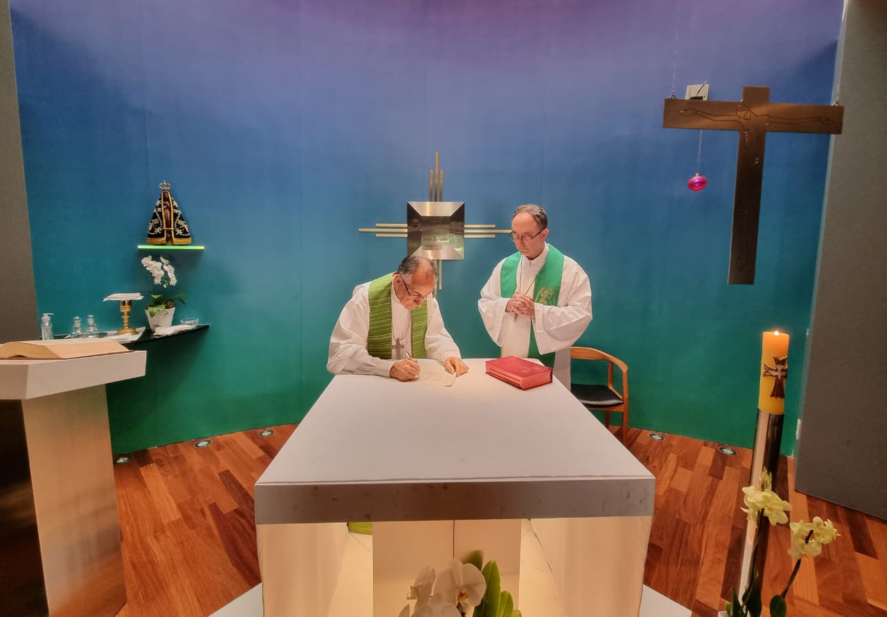 No fim da manhã de hoje, 27 de julho, o monsenhor Juraci Gomes de Oliveira realizou a Profissão de Fé e o Juramento de Fidelidade, na Capela da residência Episcopal. Este ato é previsto pelo Código de Direito Canônico e pelo Dicastério para a Doutrina da Fé, e deve ser feito diante do bispo diocesano – no caso da Arquidiocese de Salvador, perante o Cardeal Dom Sergio da Rocha -, sendo os documentos assinados à mão logo em seguida.