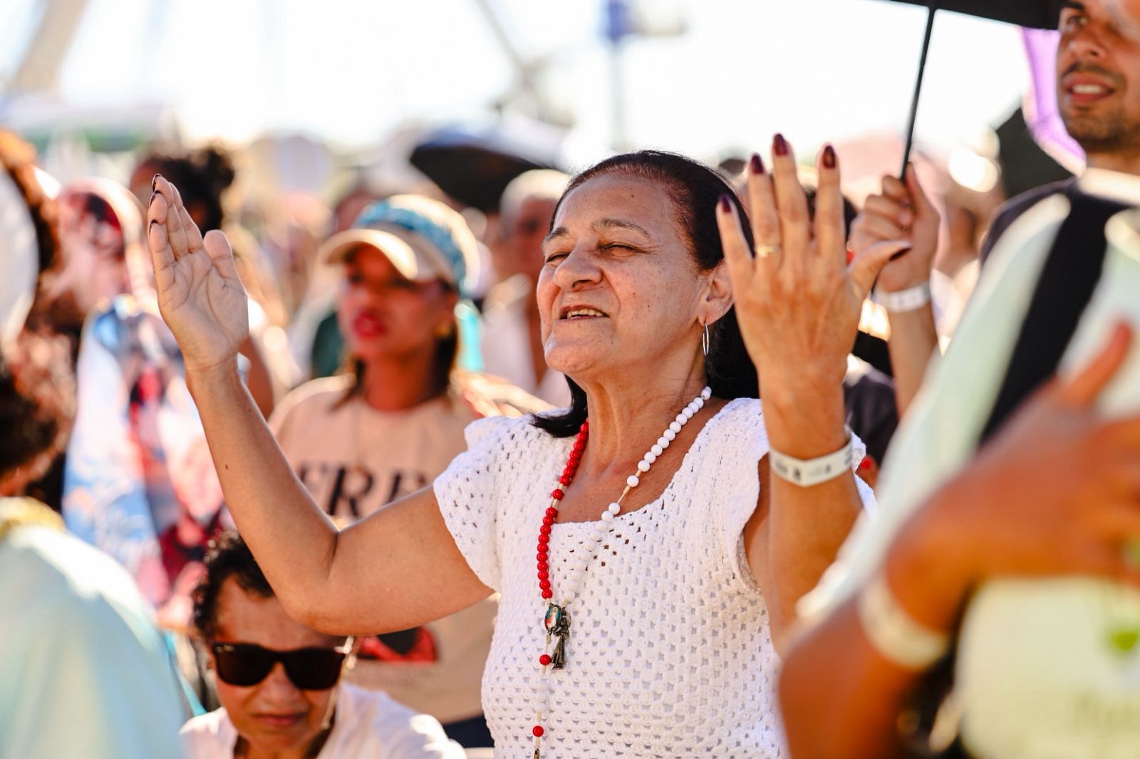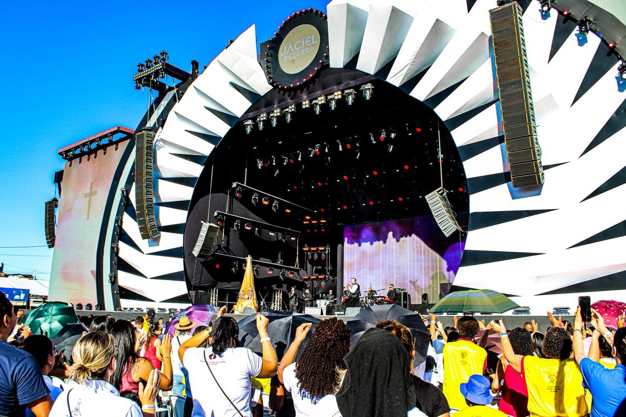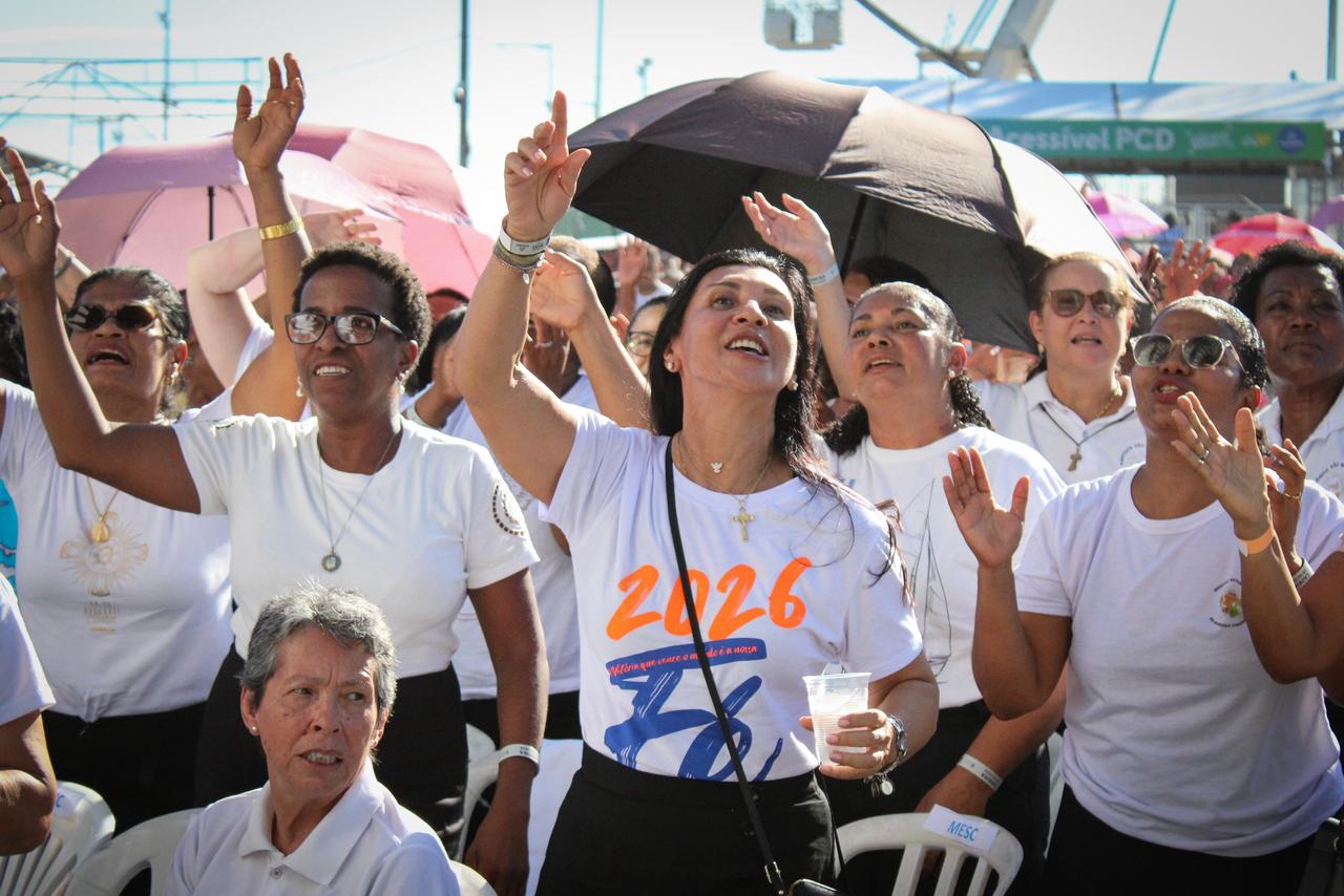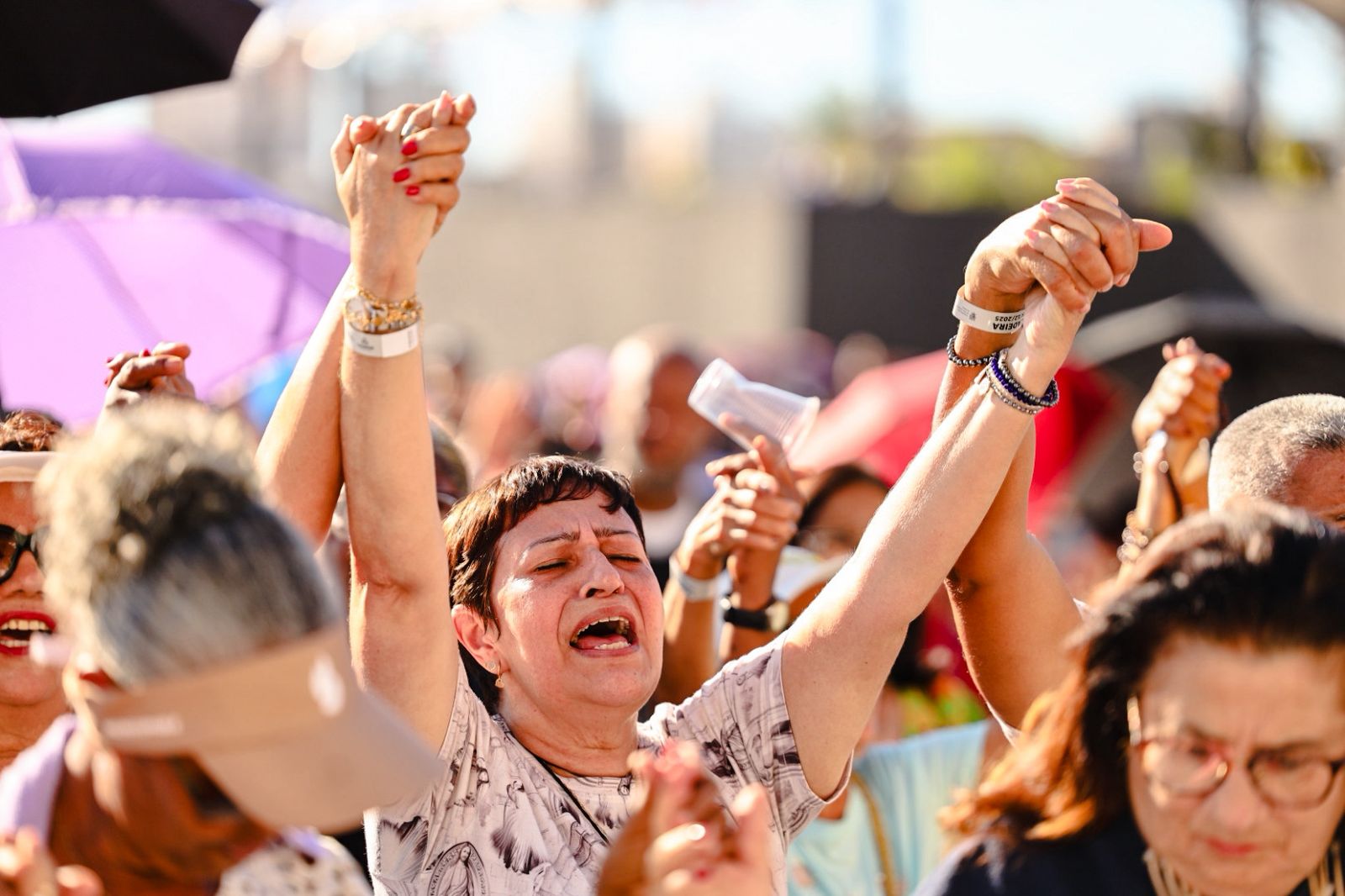 Os portões foram abertos às 12h, mas, desde as primeiras horas da manhã, fiéis já se concentravam no local, demonstrando expectativa e alegria para vivenciar um Natal marcado pela oração, pela música e pela comunhão. Famílias inteiras, jovens, idosos e crianças ocuparam a arena em um clima de fraternidade e devoção.