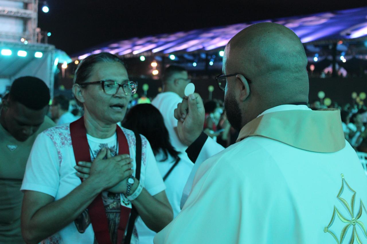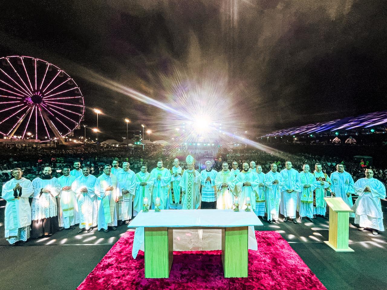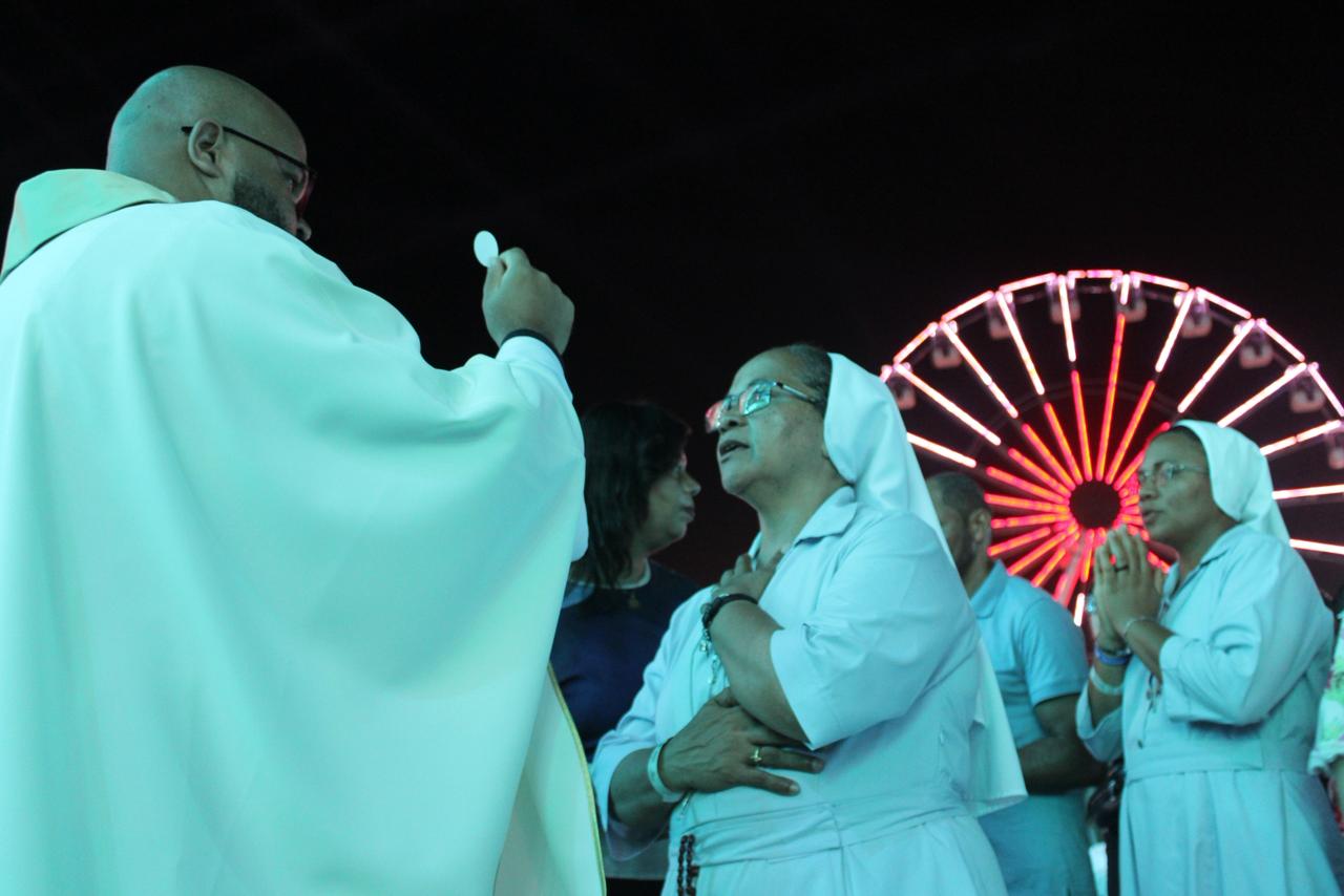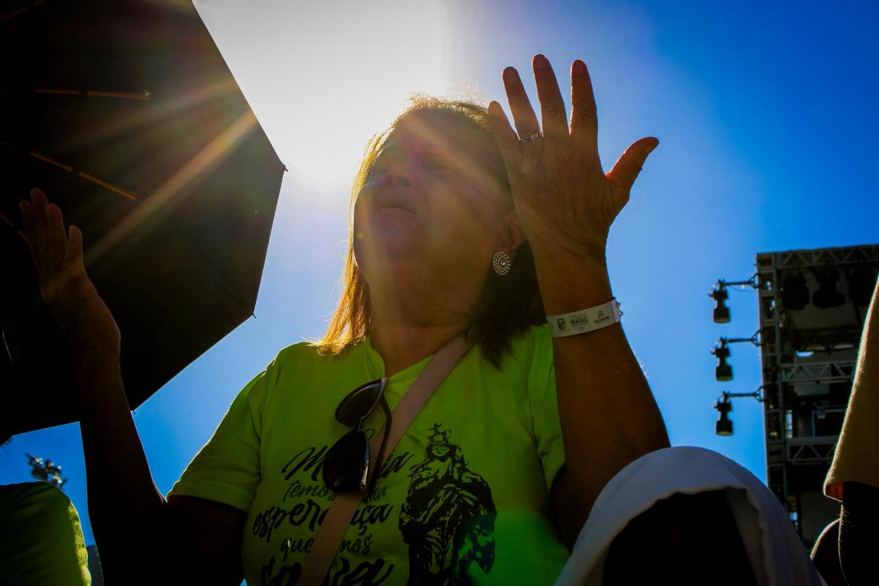 Os portões foram abertos às 12h, mas, desde as primeiras horas da manhã, fiéis já se concentravam no local, demonstrando expectativa e alegria para vivenciar um Natal marcado pela oração, pela música e pela comunhão. Famílias inteiras, jovens, idosos e crianças ocuparam a arena em um clima de fraternidade e devoção.