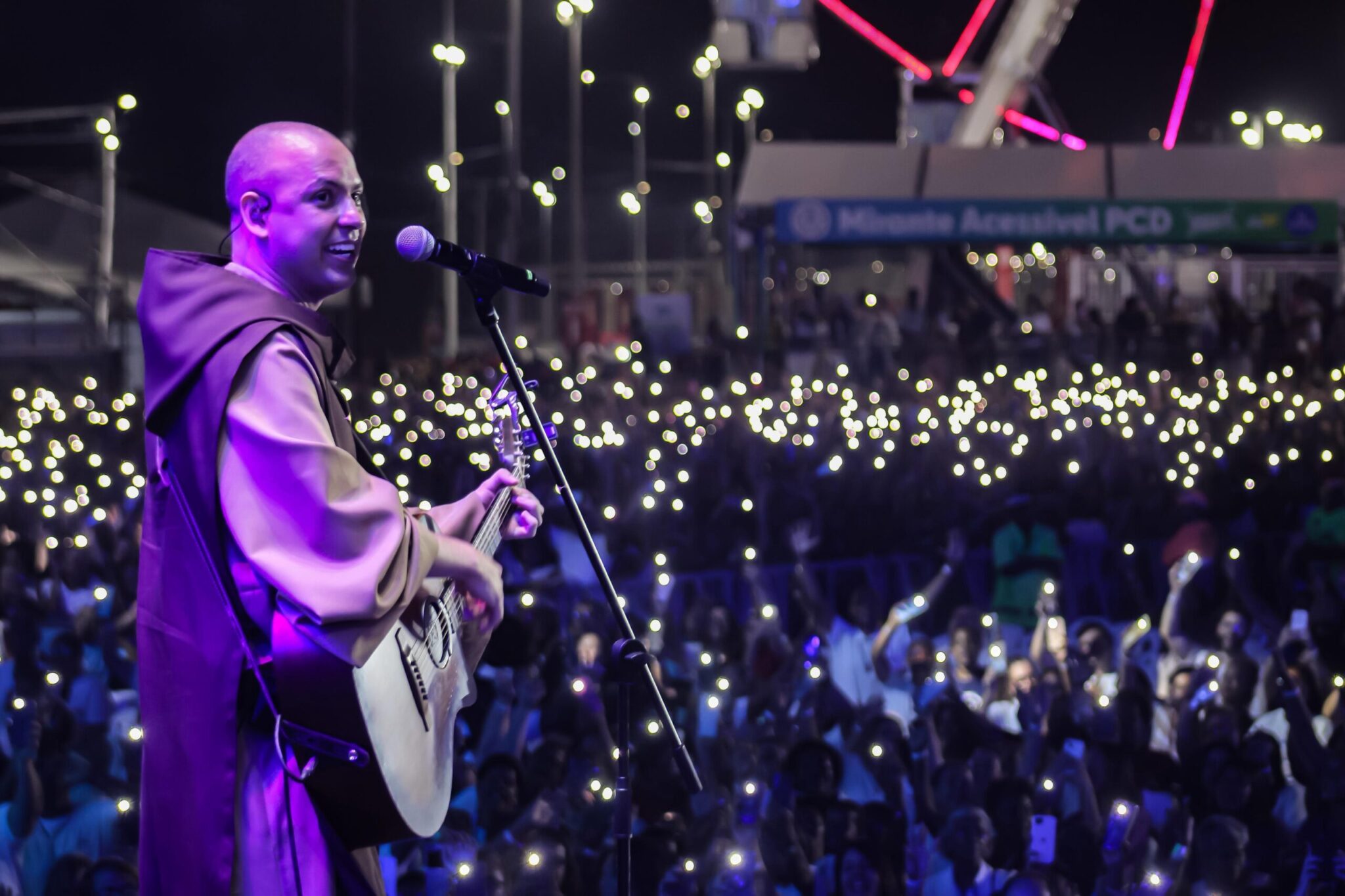 Após a Celebração Eucarística, os fiéis acompanharam com entusiasmo o show do frei Gilson, um dos momentos mais aguardados da programação. Com músicas marcadas pela espiritualidade e pela profundidade da fé, o religioso conduziu o público a um encerramento orante e festivo, reforçando a mensagem central do Natal: Deus se faz próximo, nasce entre nós e caminha com o Seu povo.