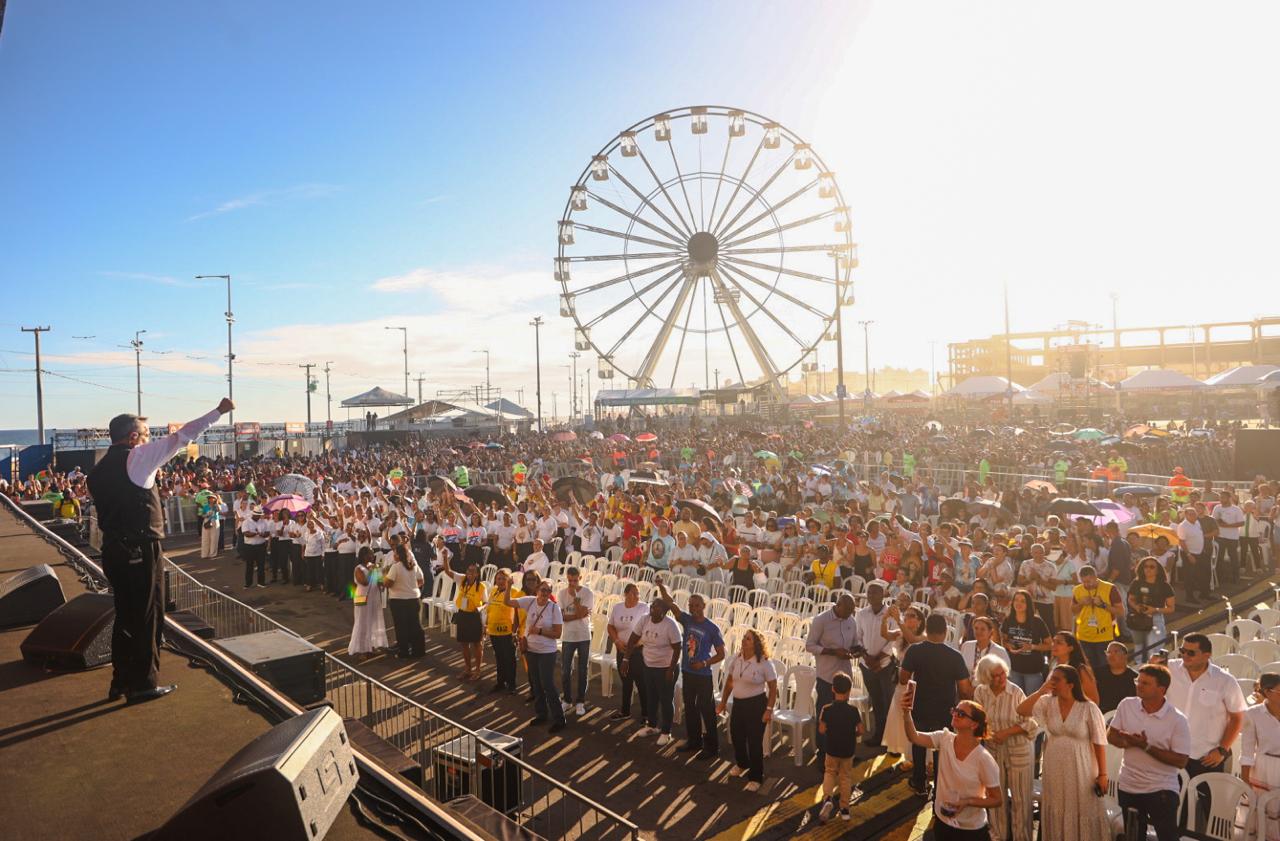 Cerca de 100 mil pessoas participaram do Natal do Salvador, grande encontro de fé e evangelização realizado na tarde do dia 25 de dezembro, na Arena O Canto da Cidade. O evento foi promovido pela Arquidiocese de São Salvador da Bahia, em parceria com a Paróquia Divino Espírito Santo (Vale dos Lagos), e contou com o apoio da Prefeitura de Salvador, reunindo fiéis de diversas paróquias da capital e de outros municípios baianos.