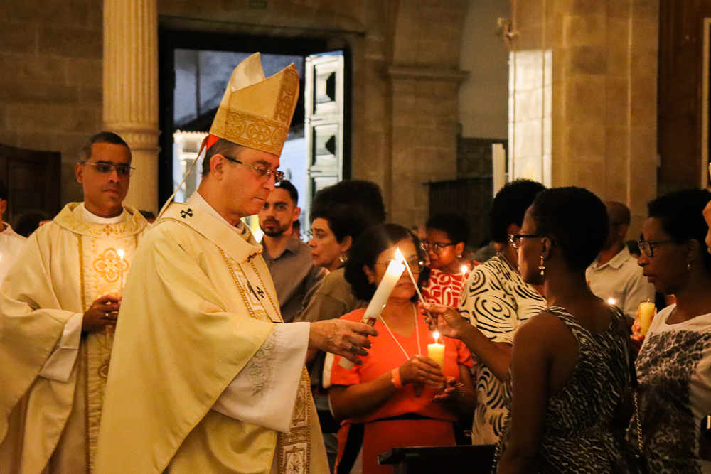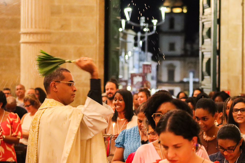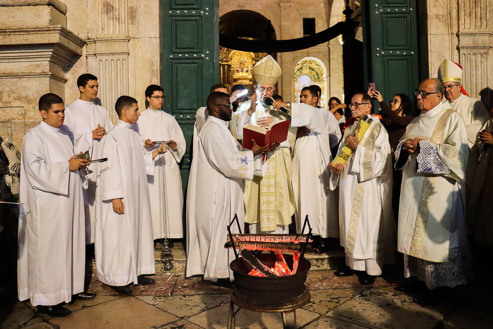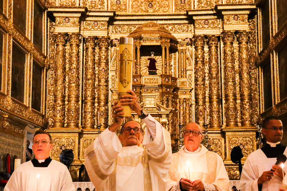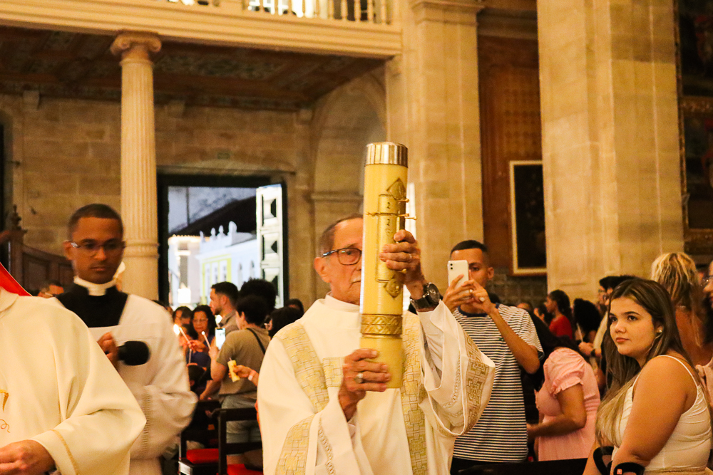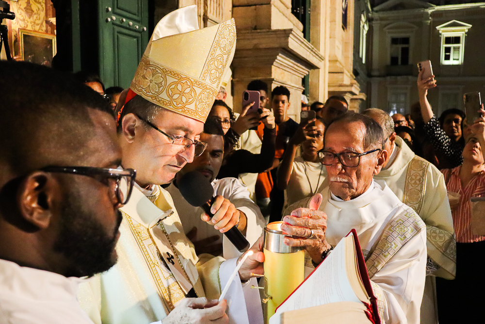 Na noite do Sábado Santo, celebrada neste ano em 04 de abril, centenas de fiéis se reuniram na Catedral Basílica do Santíssimo Salvador para participar da Solene Vigília Pascal, considerada a Noite das Noites e o ponto culminante de todo o Ano Litúrgico. A celebração foi presidida pelo Arcebispo de São Salvador da Bahia, Primaz do Brasil, Cardeal Sergio da Rocha, e teve como concelebrantes o bispo auxiliar, Dom Marco Eugênio Galrão, e o padre Leandro Oliveira, da Comunidade Católica Shalom.