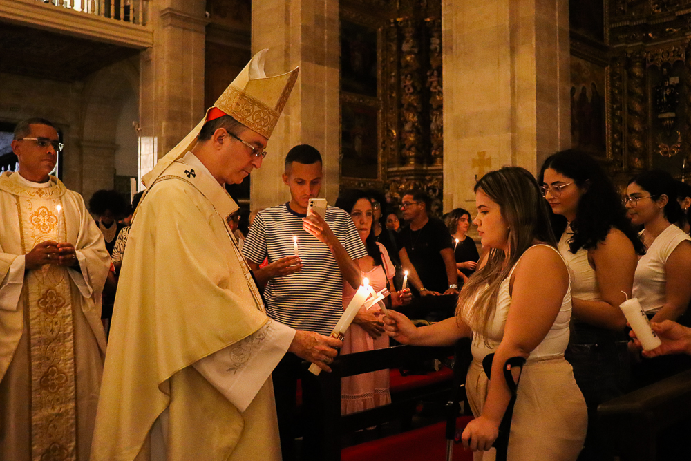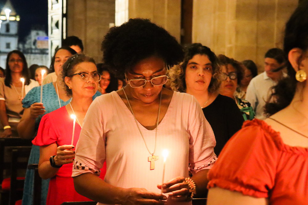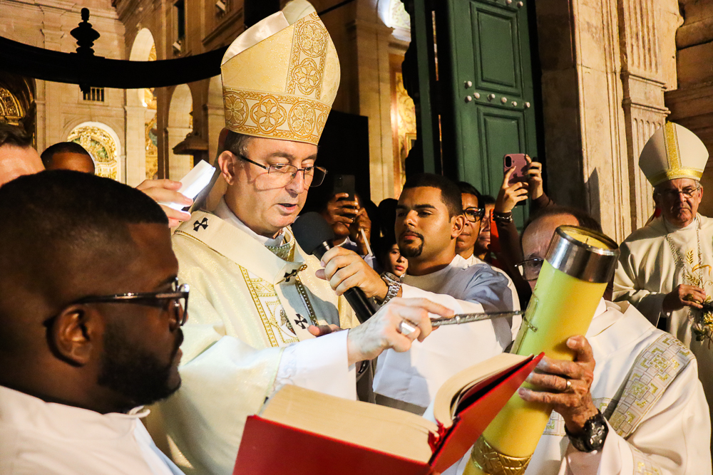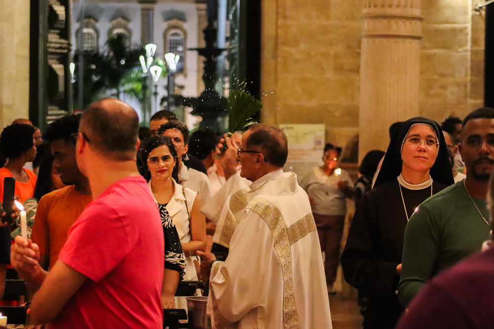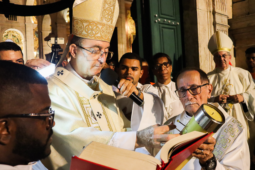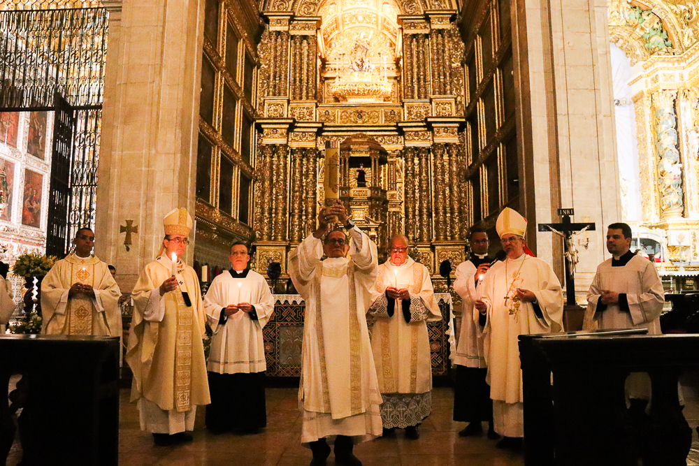 Na noite do Sábado Santo, celebrada neste ano em 04 de abril, centenas de fiéis se reuniram na Catedral Basílica do Santíssimo Salvador para participar da Solene Vigília Pascal, considerada a Noite das Noites e o ponto culminante de todo o Ano Litúrgico. A celebração foi presidida pelo Arcebispo de São Salvador da Bahia, Primaz do Brasil, Cardeal Sergio da Rocha, e teve como concelebrantes o bispo auxiliar, Dom Marco Eugênio Galrão, e o padre Leandro Oliveira, da Comunidade Católica Shalom.