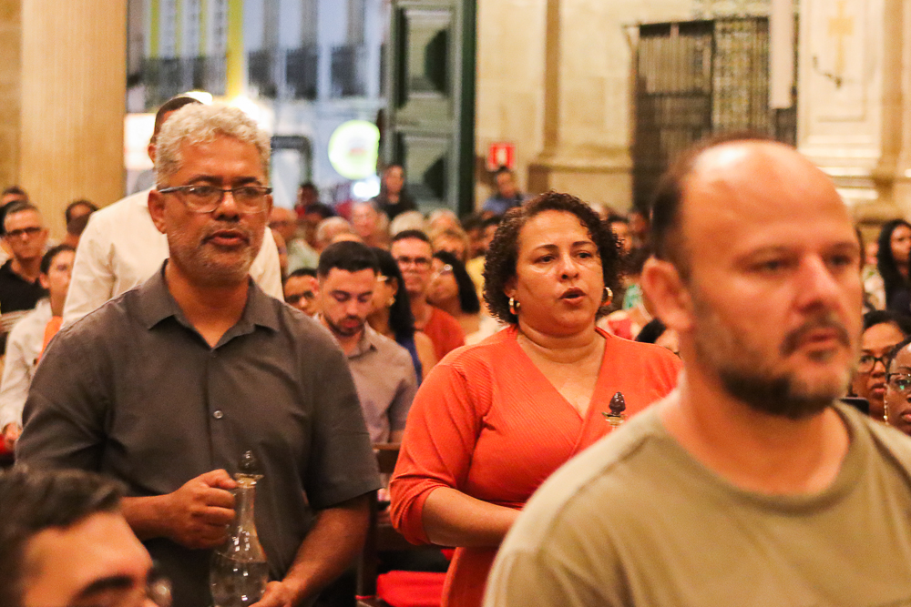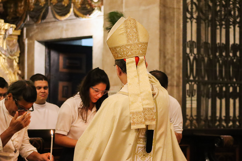 O segundo momento da celebração foi a Liturgia da Palavra, que percorreu a história da salvação, do Antigo ao Novo Testamento, recordando as maravilhas realizadas por Deus na história do Seu povo. Em seguida, os fiéis, novamente com as velas acesas, renovaram as Promessas Batismais, recordando o compromisso de viver como filhos e filhas da luz.