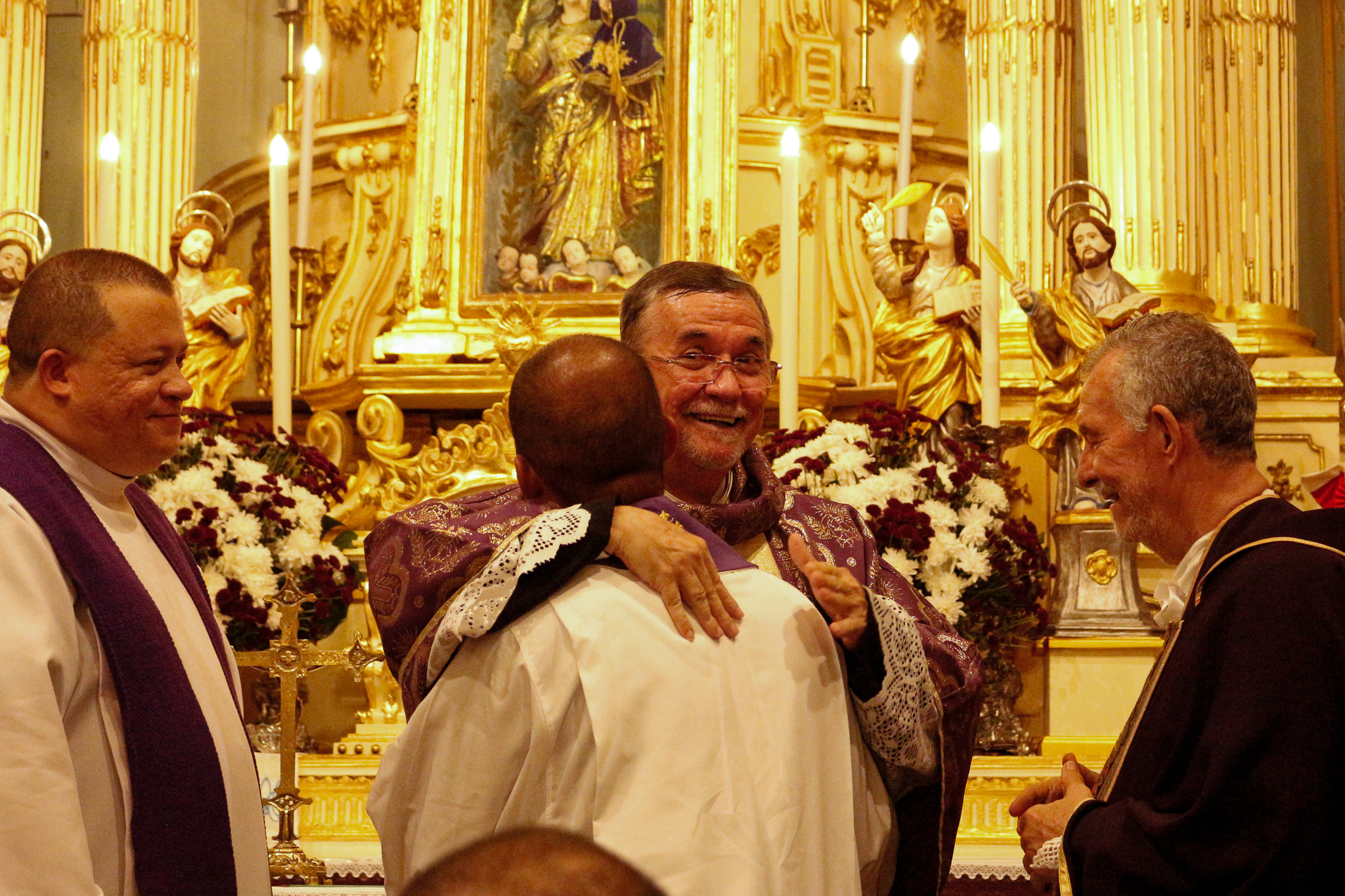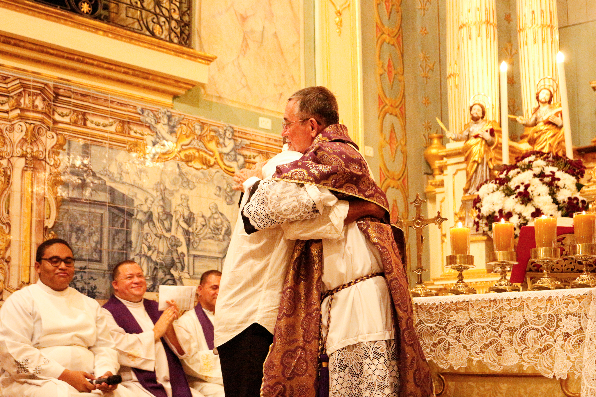Assim que a homilia foi concluída, o padre Frederico recebeu, das mãos do bispo, as chaves da Igreja e do sacrário, o óleo do Batismo e a estola roxa. “Para bem viver esta missão que é dada pela Igreja, o padre Frederico vem não porque ele escolheu, não porque ele quis, mas porque a Igreja pediu a ele que pudesse abraçar esses serviços. Ele vem em nome da Arquidiocese, ele vem em nome da Igreja, ele vem em nome do Senhor para poder aqui trabalhar, para aqui poder edificar o Reino de Deus. Por isso, a todos nós, compete rezar e colaborar, para que a ação do novo padre possa produzir frutos para o bem do nosso próprio povo. Eu os convido, irmãos e irmãs, a partir de hoje, a rezarem todos os dias pelo seu padre”, disse Dom Valter.