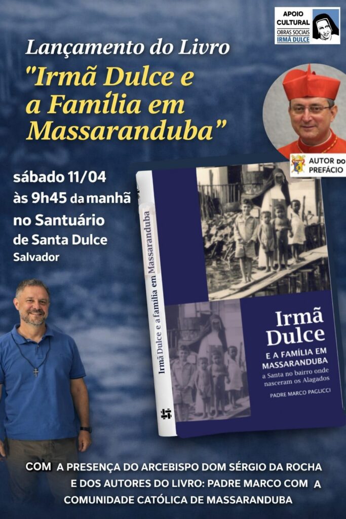 Neste sábado, 11 de abril, o padre Marco Pagicci, pároco da Paróquia Nossa Senhora da Piedade, lançará o livro “Irmã Dulce e a Família em Massaranduba”. O evento terá início às 9h45, no Santuário de Santa Dulce dos Pobres (Avenida Dendezeiros do Bonfim, 161, Largo de Roma, Salvador), e contará com a presença do Arcebispo de São Salvador da Bahia, Primaz do Brasil, Cardeal Dom Sergio da Rocha.