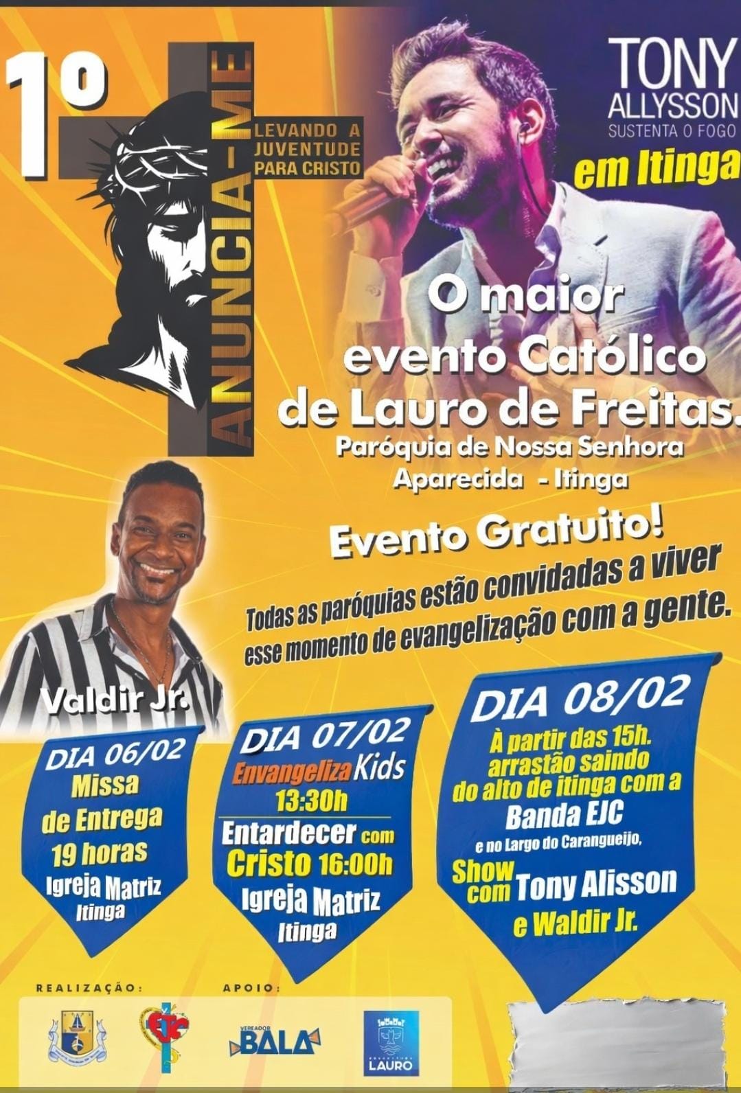 A Paróquia Nossa Senhora Aparecida, no bairro de Itinga, em Lauro de Freitas, realizará entre os dias 6, 7 e 8 de fevereiro de 2026 o evento “Anuncia-me – Levando a Juventude para Cristo”, voltado à evangelização de jovens e adultos e marcado por momentos de música, fé, louvor e celebração com o objetivo de despertar nos participantes o desejo de perseverar no seguimento de Cristo. A iniciativa, com entrada gratuita, ganhará ainda mais relevância por acontecer em um território historicamente marcado por significativos índices de violência e marginalização social, reafirmando a missão da Igreja de promover esperança, comunhão e transformação de vidas.