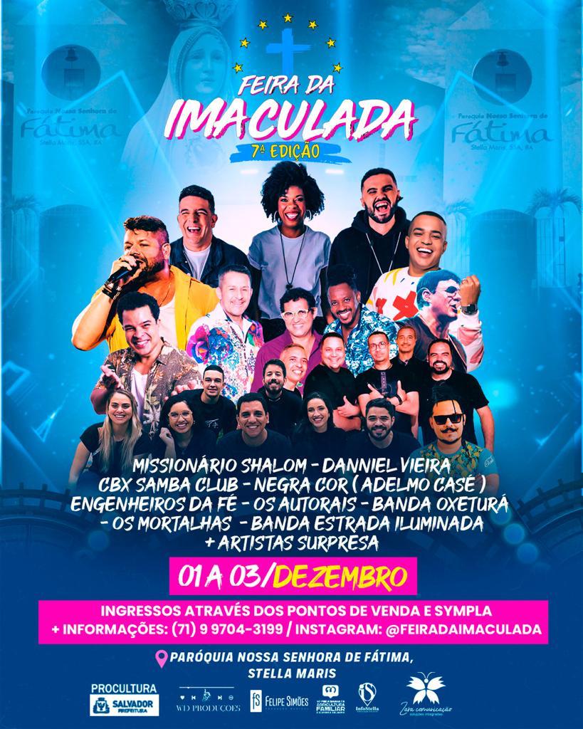 Nos dias 1 (a partir das 19h), 2 (às 15h) e 3 de dezembro (às 8h), a Paróquia Nossa Senhora de Fátima, Stella Maris, realizará a 7ª edição da Feira da Imaculada, evento que promete reunir espaços de convivência, momentos oracionais, barracas de alimentação, atividades para o público infantil, ações solidárias, shows e muito mais.