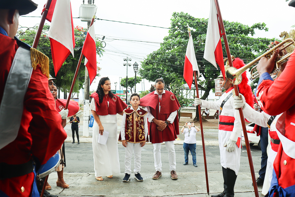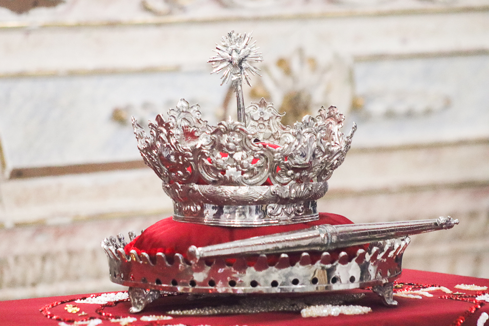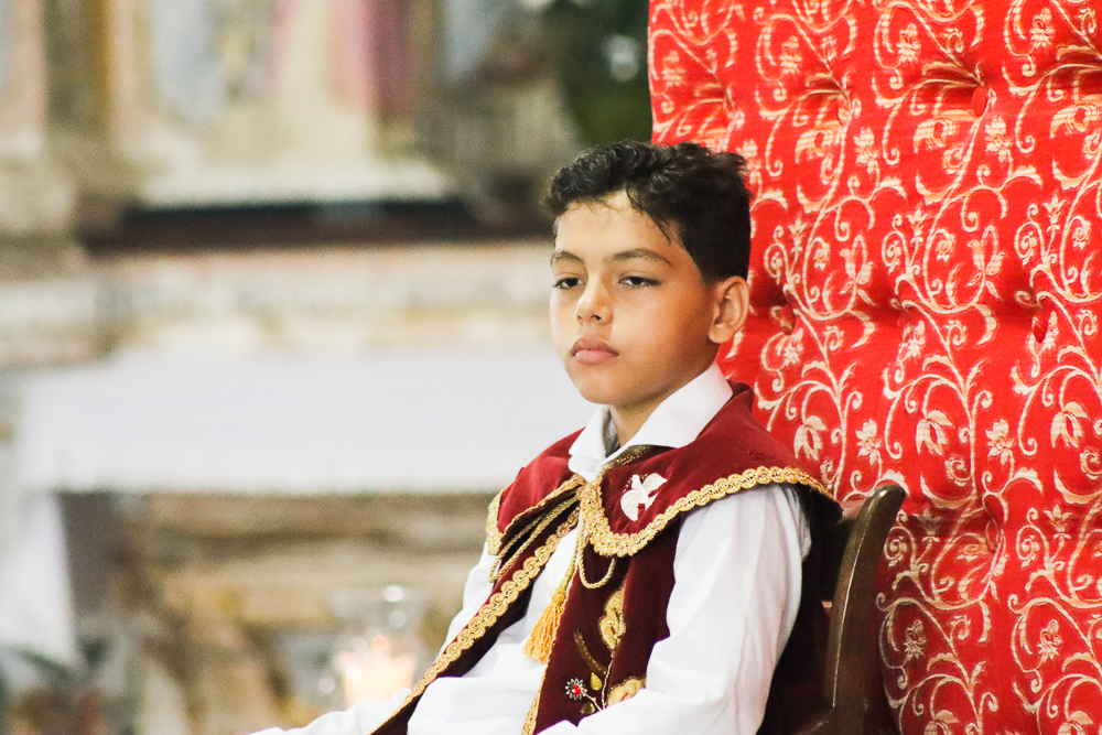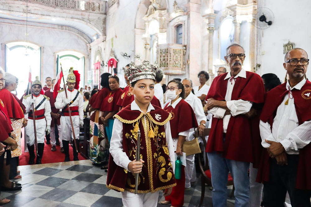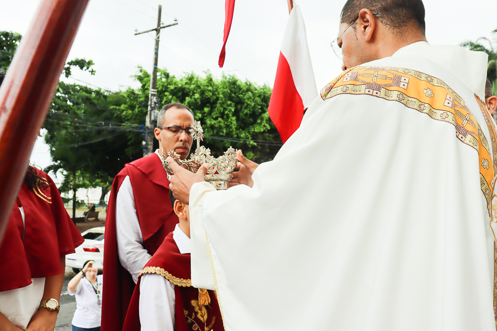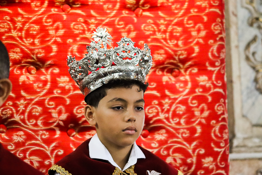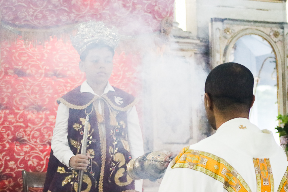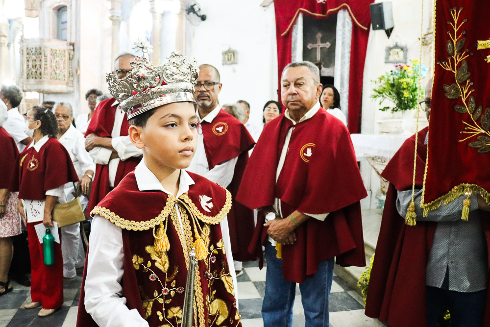 Tradicionalmente, nos sete domingos que precedem a Solenidade de Pentecostes, um menino é coroado, representando o imperador – fazendo alusão ao início destes festejos no Brasil, que já tem 254 anos. Assim, antes do cortejo processional, o padre Jailson coroou Lucas Souza Santos, na porta do templo, que também recebeu e beijou o cedro. Em seguida, o menino imperador sentou em um local preparado para ele.
