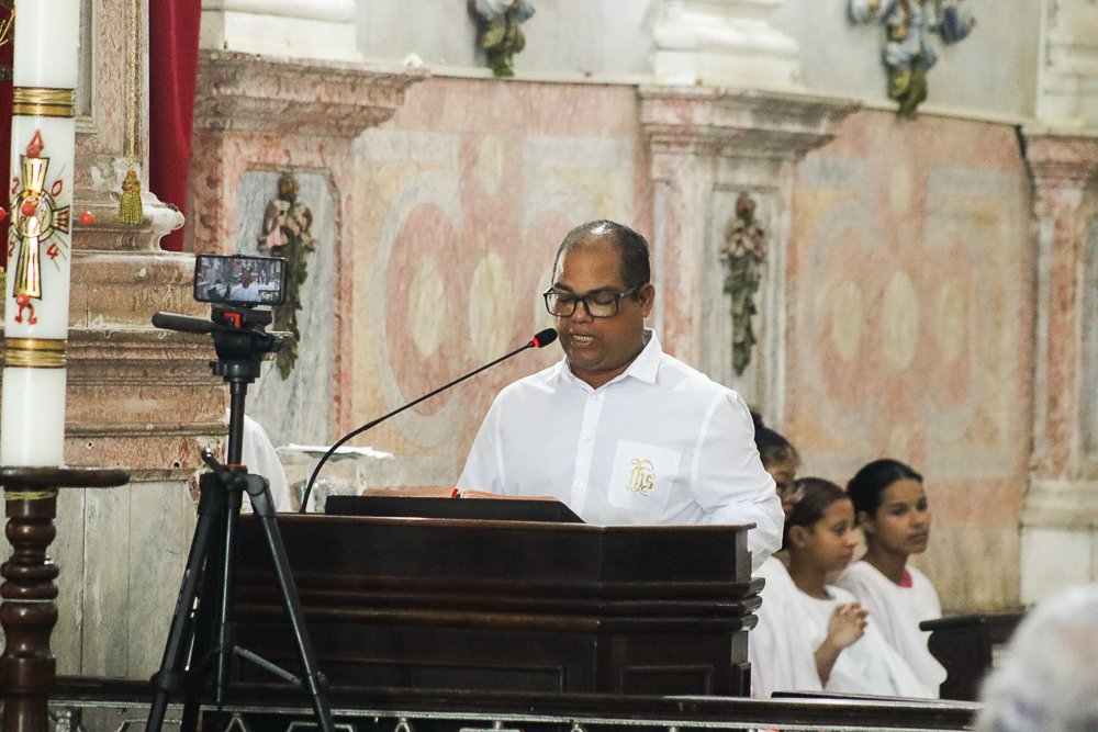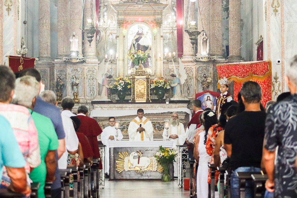 A Proclamação do Evangelho foi realizada pelo padre João, que também proferiu a homilia. “O Espírito que dá a vida. Se não há vida, não há Espírito”. O sacerdote também falou sobre o trabalho da Comunidade da Trindade, que acolhe pessoas em situação de rua, dando-lhes dignidade. “Não podemos perder essa tradição. Essa é uma festa única que nós recebemos de Portugal e vamos continuar fazendo essa festa bonita”, afirmou o padre Jailson.