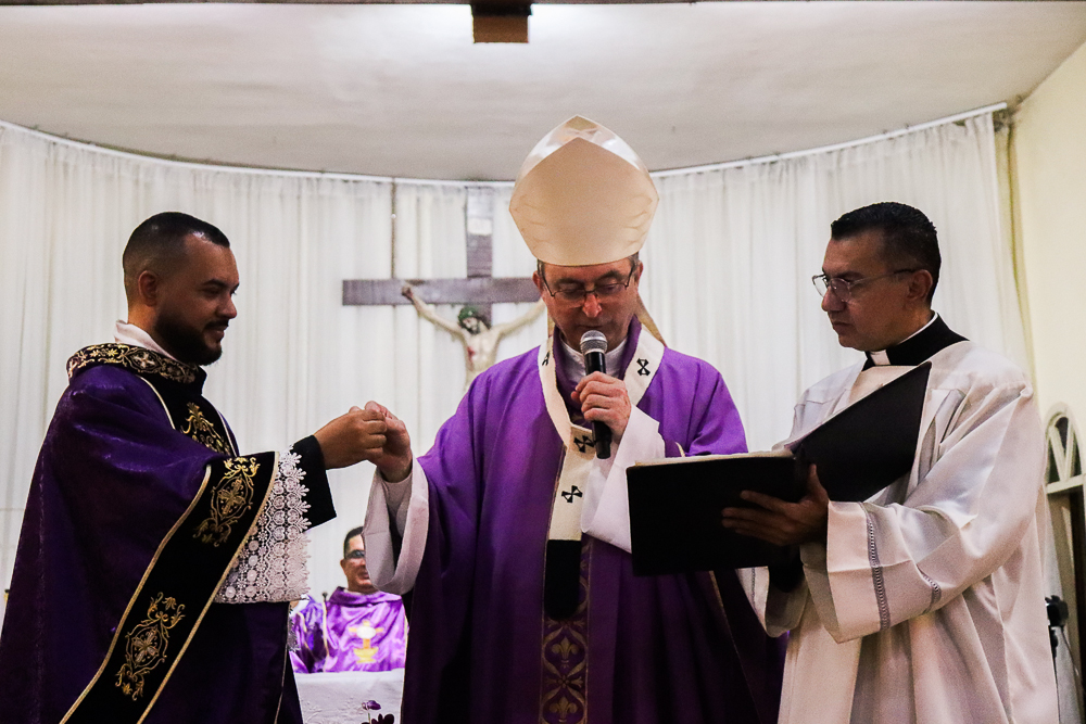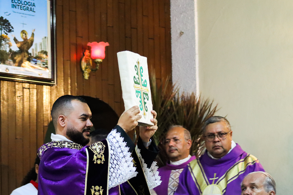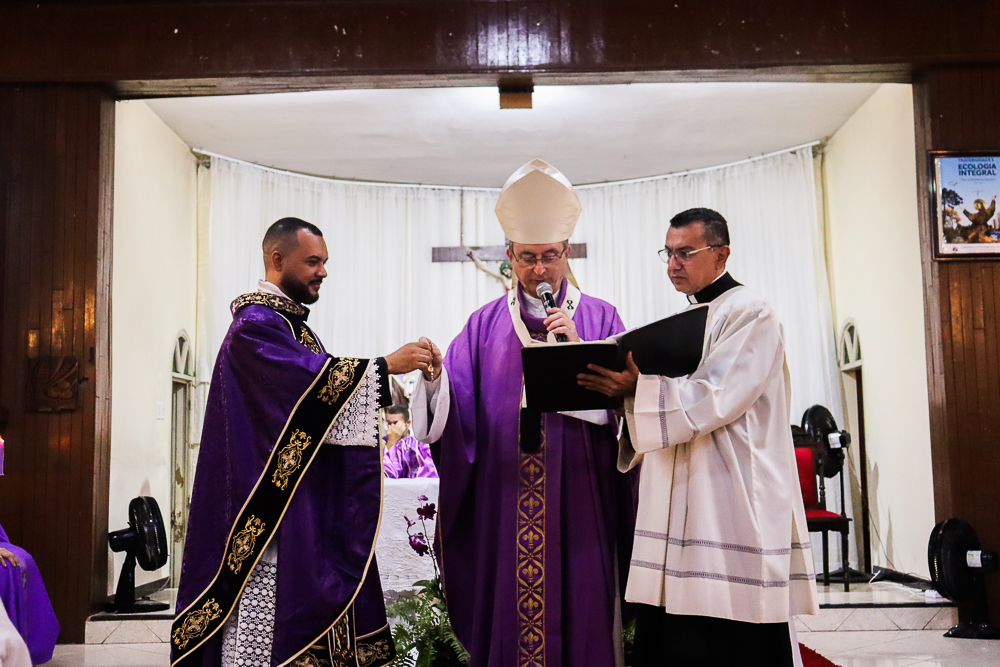 Após a homilia, foram conduzidos ao altar as chaves da Igreja e do sacrário; o óleo dos catecúmenos e a estola roxa, símbolos dos Sacramentos do Batismo e da Confissão, que serão distribuídos pelas mãos do novo pároco, que também renovou, diante da Bíblia, as Promessas Sacerdotais. Empossado, antes da bênção final, o padre Hermano recebeu as boas-vindas da comunidade paroquial e também proferiu, com alegria, algumas palavras aos fiéis que passam a ser por ele pastoreados.