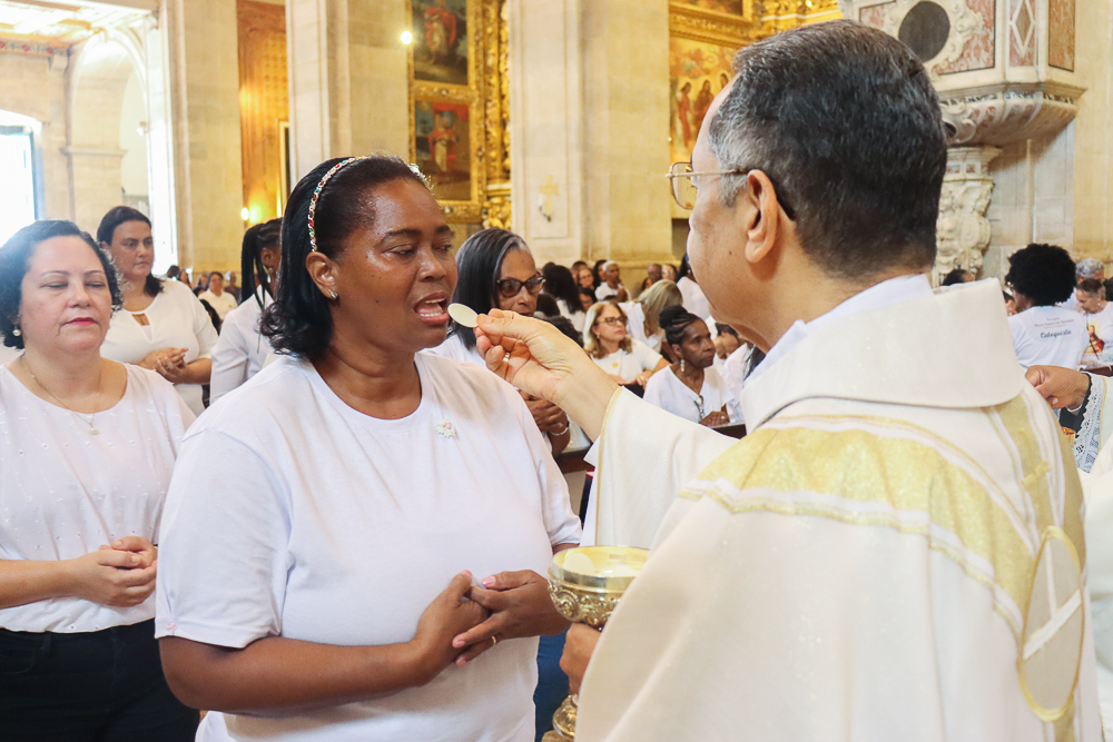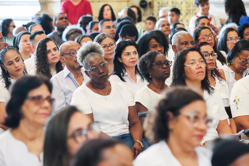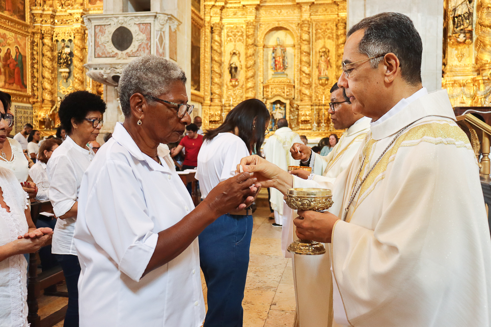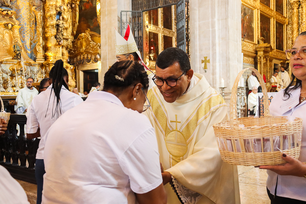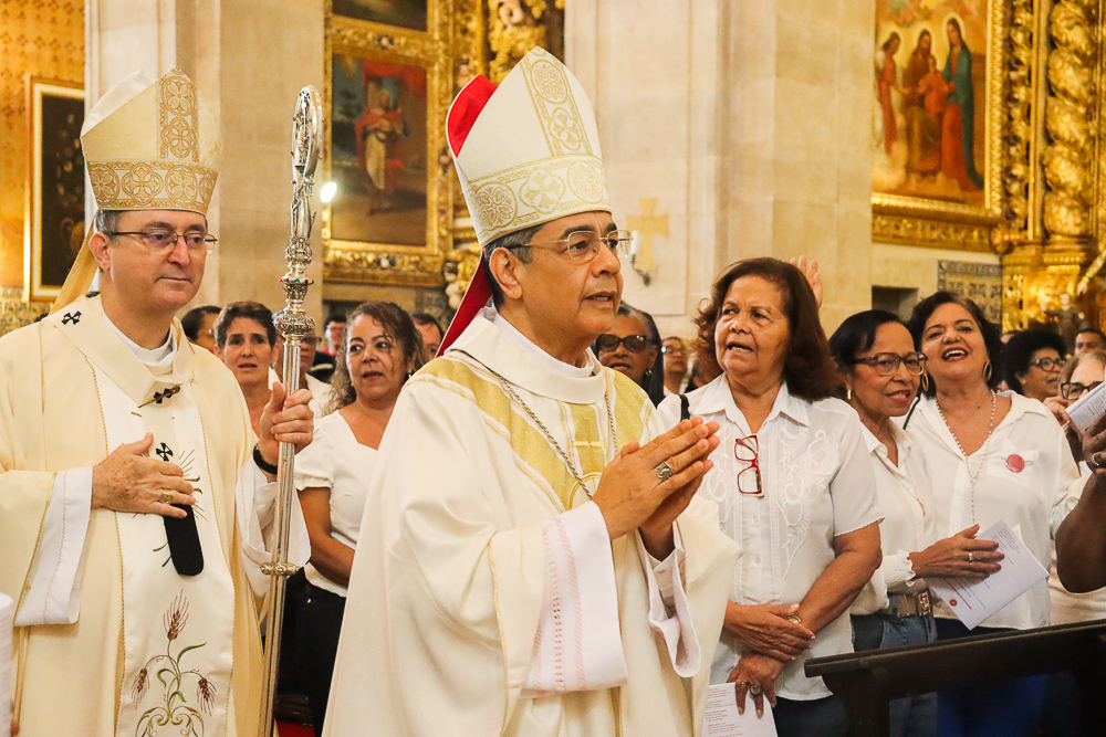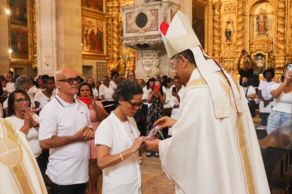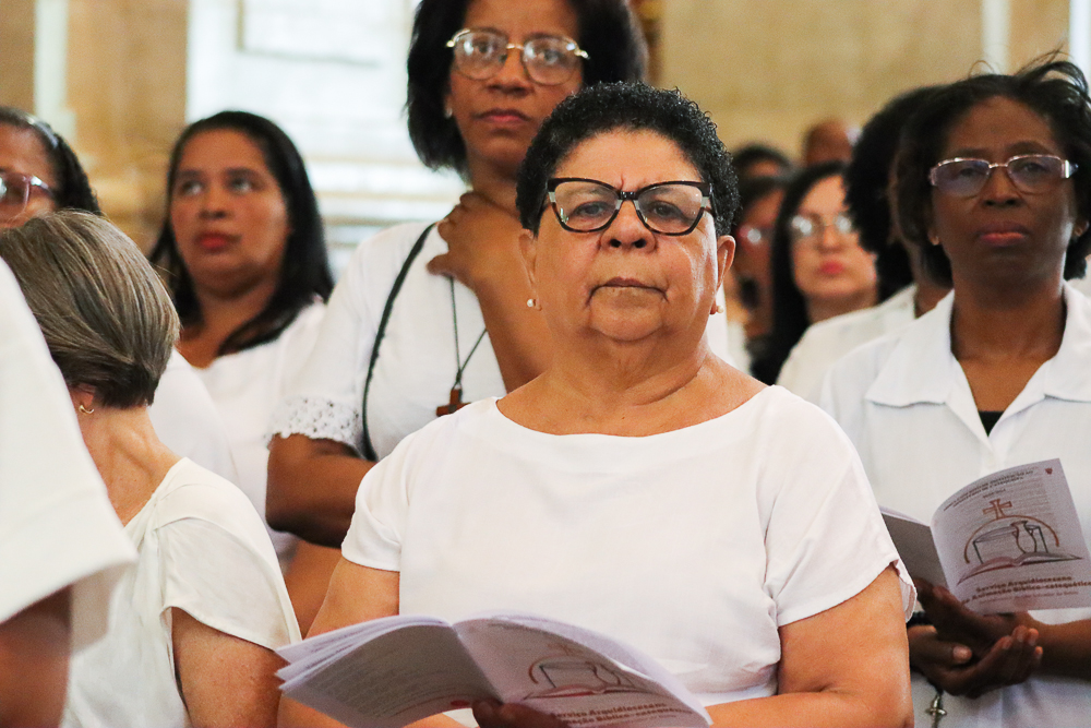 A Catedral Basílica ficou lotada na manhã deste domingo, 8 de setembro – Natividade de Nossa Senhora. Todos queriam testemunhar os primeiros a serem instituídos no Ministério de Catequista na Arquidiocese de São Salvador da Bahia: 184, no total. A Celebração Eucarística teve início às 8h, sob a presidência do Arcebispo de São Salvador da Bahia, Primaz do Brasil, Cardeal Dom Sergio da Rocha, e foi concelebrada pelo bispo auxiliar, Dom Dorival Barreto; pelo cura da Catedral, padre José Abel Pinheiro; pelo assistente eclesiástico do Serviço Arquidiocesano de Animação Bíblico-catequética, padre José Carlos Ferreira; e por outros padres do clero da Sé Primacial do país [clique aqui e veja a transmissão da Missa].
