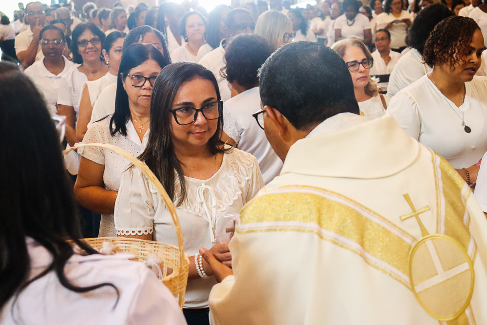 “Queridos irmãos, aqui nos reunimos para celebrar esta Eucaristia com o rito de Instituição do Ministério de Catequista. É a primeira vez que nós temos essa graça de realizar esta instituição, uma vez que a decisão do Papa Francisco é recente. Já tivemos no Regional Nordeste 3 a instituição de um catequista de cada diocese, e hoje temos a graça, a alegria de ter a instituição dos nossos catequistas que estão à serviço das nossas comunidades”, disse Dom Sergio no início da Missa.