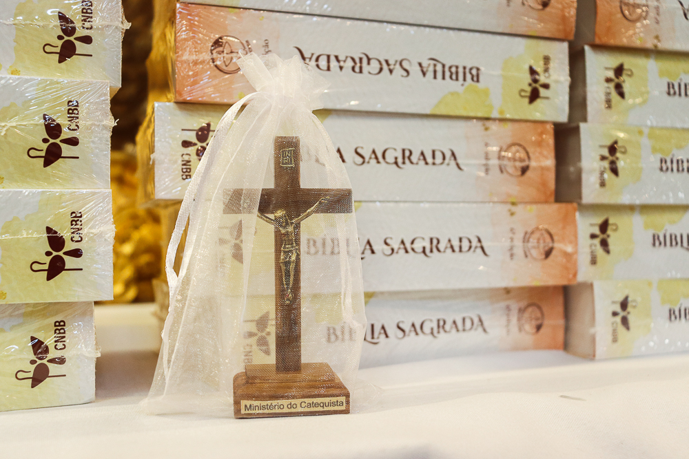 Logo após a homilia, ajoelhados, os catequistas foram abençoados pelo Cardeal e, em seguida, receberam crucifixos, entregues por Dom Dorival e pelo padre José Carlos. “O Ministério de Catequista é um serviço precioso prestado à Igreja por esses irmãos e irmãs que hoje foram instituídos, mas que necessitam muito da oração e do apoio da comunidade. Eu peço muito às nossas comunidades que valorizem o Ministério dos nossos catequistas e os acompanhem com a oração, com a presença amiga, com o apoio fraterno. A catequese não é algo que diz respeito só aos ministros instituídos: a comunidade paroquial e as famílias devem também se sentir responsáveis pela catequese”, disse Dom Sergio.
