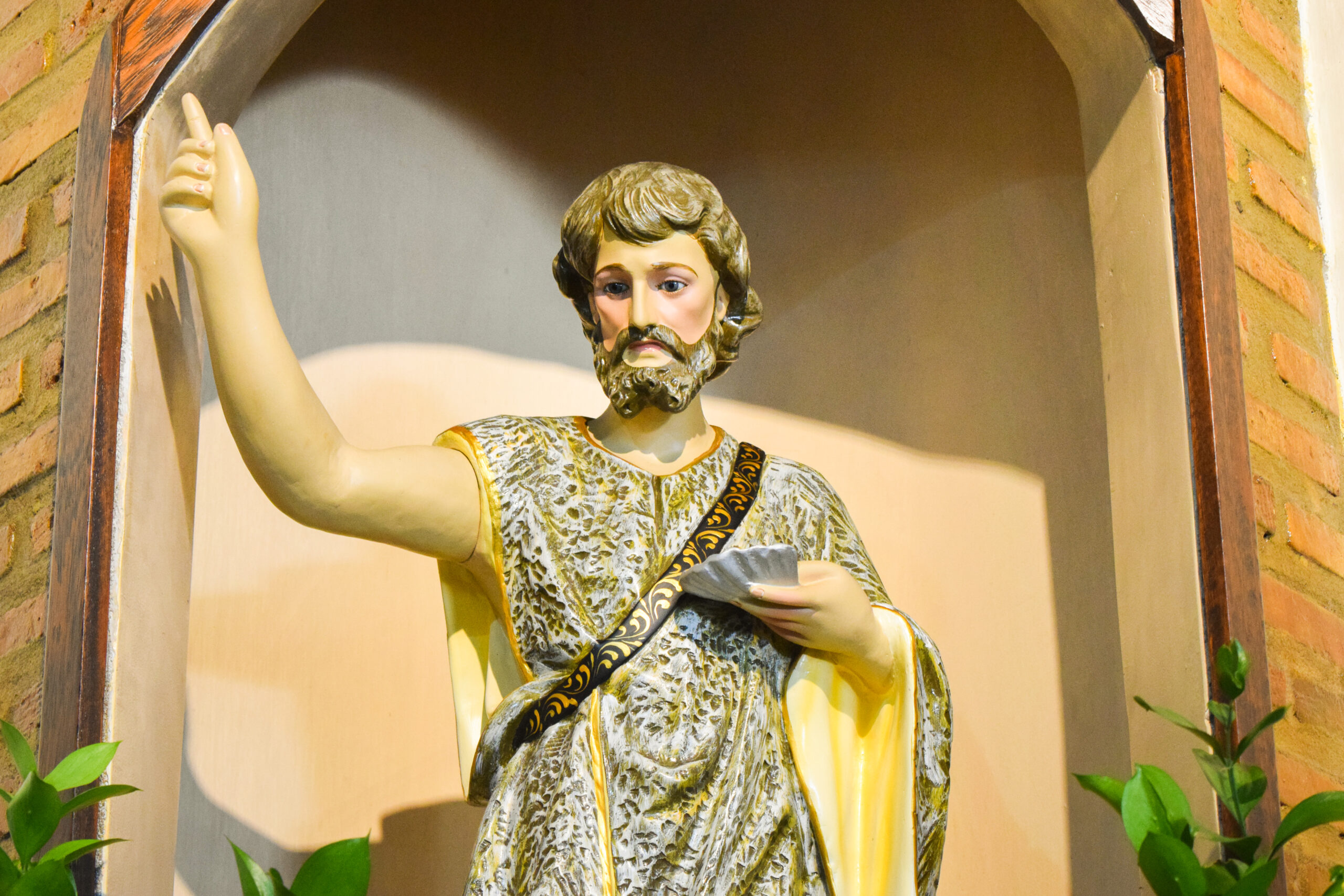 João Batista, nome que significa “Deus é propício”, é o precursor de Jesus, aquele que preparou os caminhos do Senhor. Filho de Zacarias e de Isabel (prima de Maria, a Mãe de Jesus), João pregava um batismo de penitência e batizou muitos judeus, inclusive Jesus, no Rio Jordão. Daí a origem de ser chamado Batista, porque batizava com água.