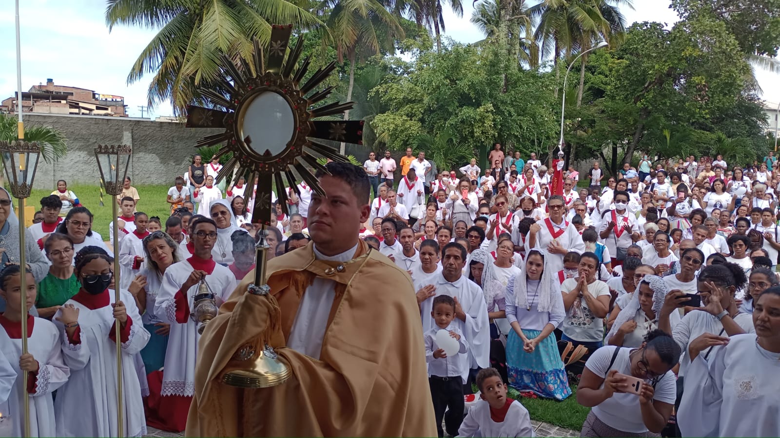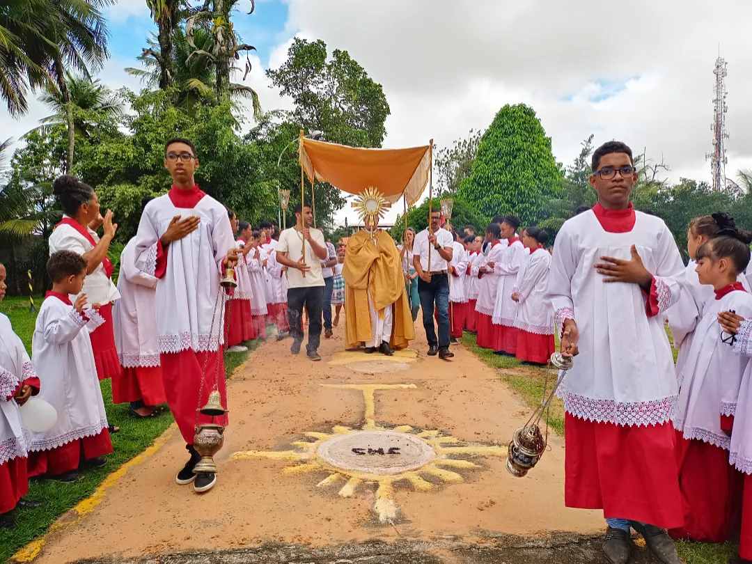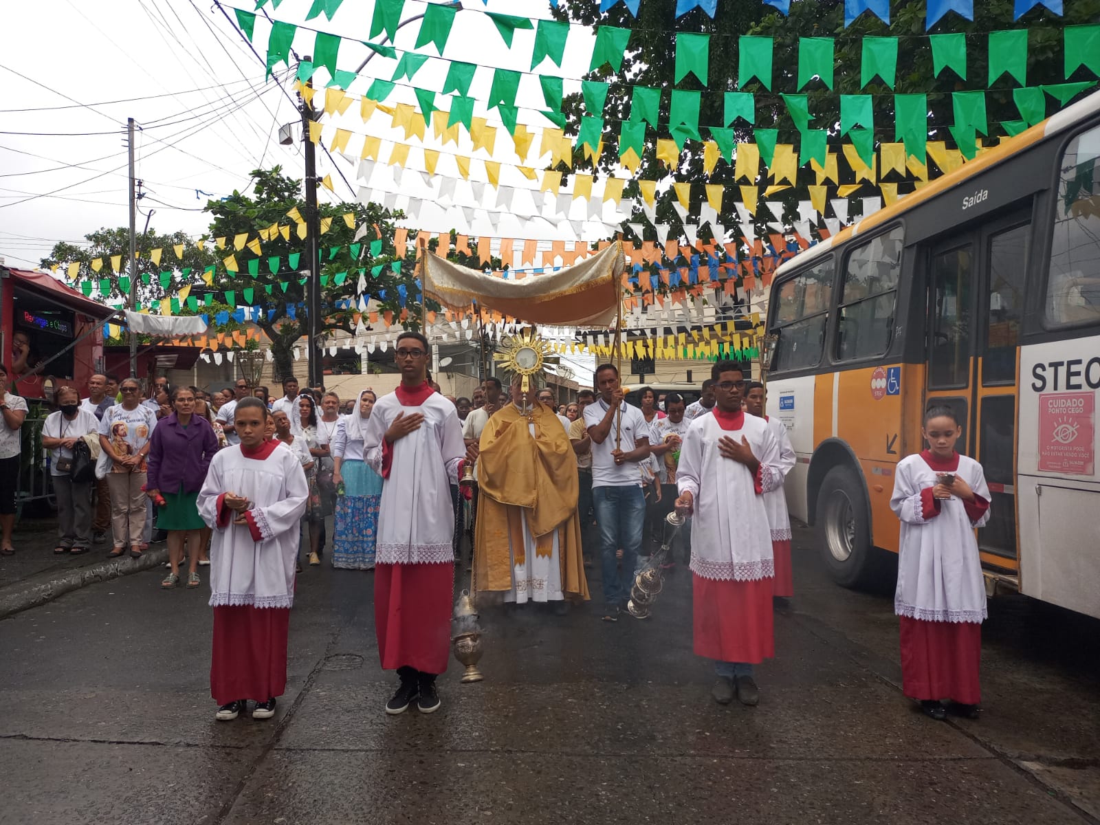 A comunidade da Paróquia Nossa Senhora do Carmo, em Sete de Abril, também participou da Missa na Solenidade de Corpus Christi. Em seguida, o Santíssimo Sacramento foi conduzido pelas ruas do bairro.