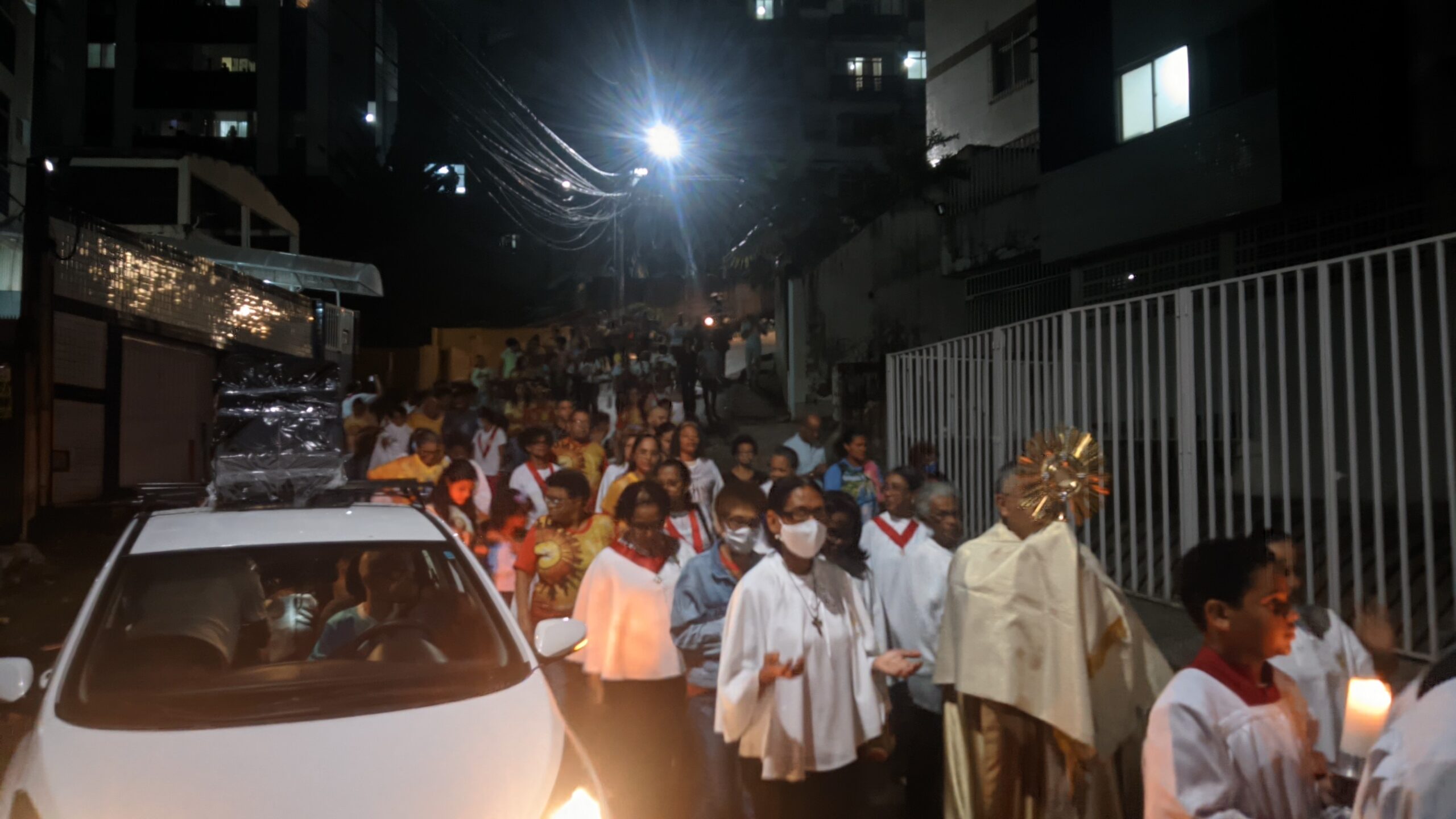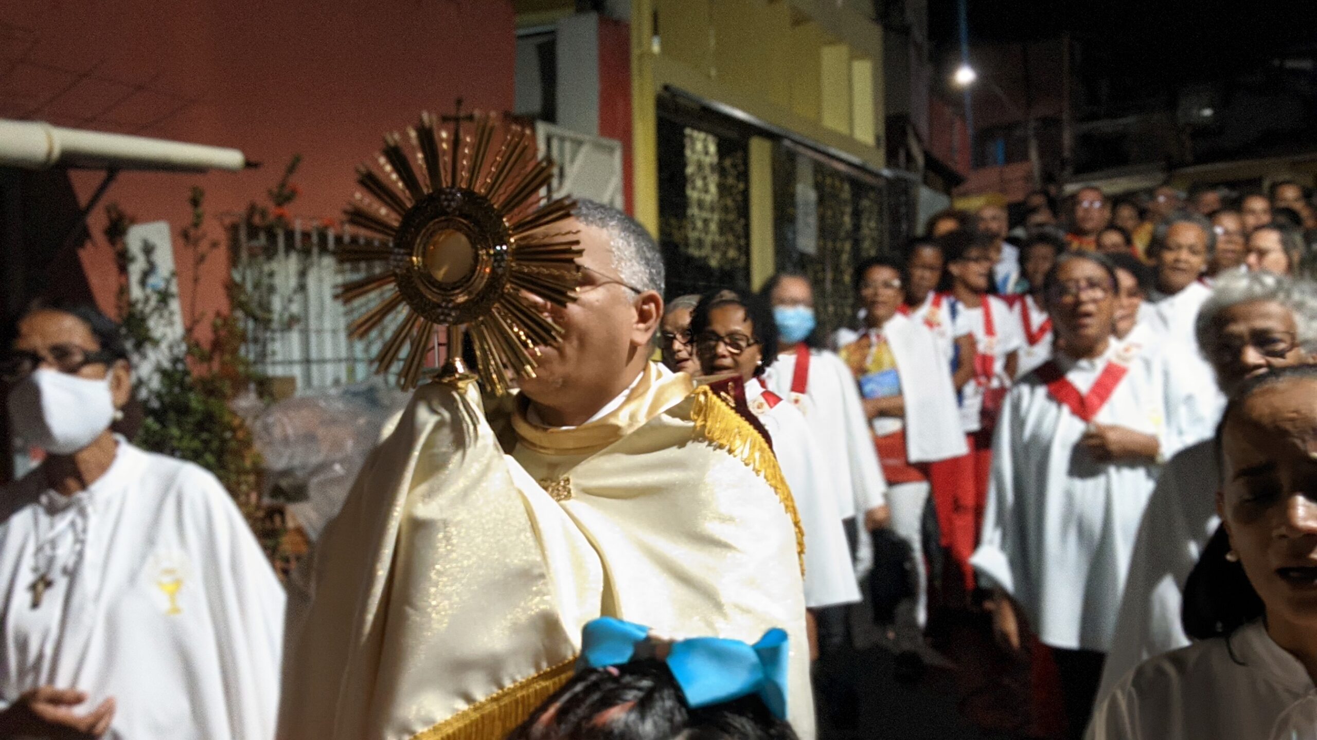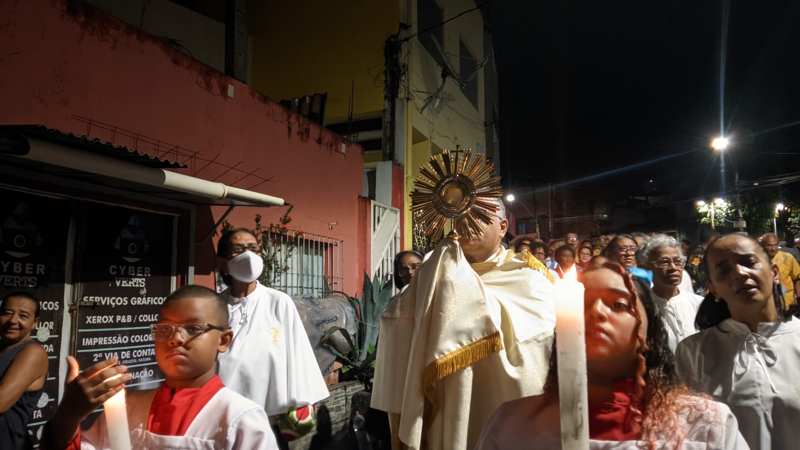Jesus Sacramentado foi conduzido, em procissão, pelas ruas do bairro Alto das Pombas, em Salvador. Antes, os fiéis participaram da Santa Missa na Matriz da Paróquia Divino Espírito Santo.