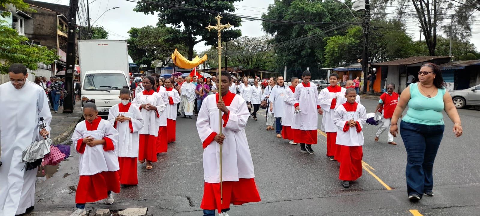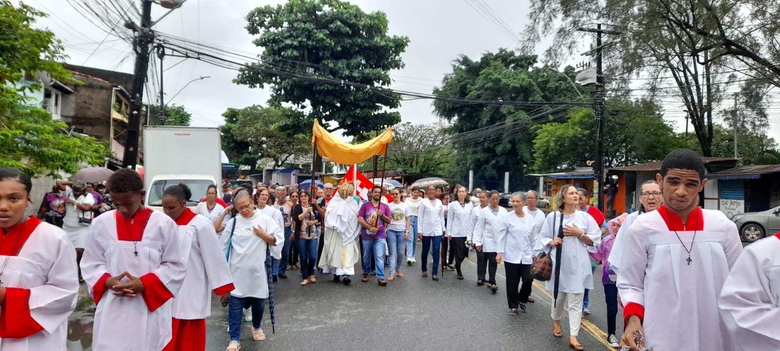 Missa e procissão marcaram a Solenidade de Corpus Christi na Paróquia Cristo Operário, no bairro Castelo Branco, em Salvador.